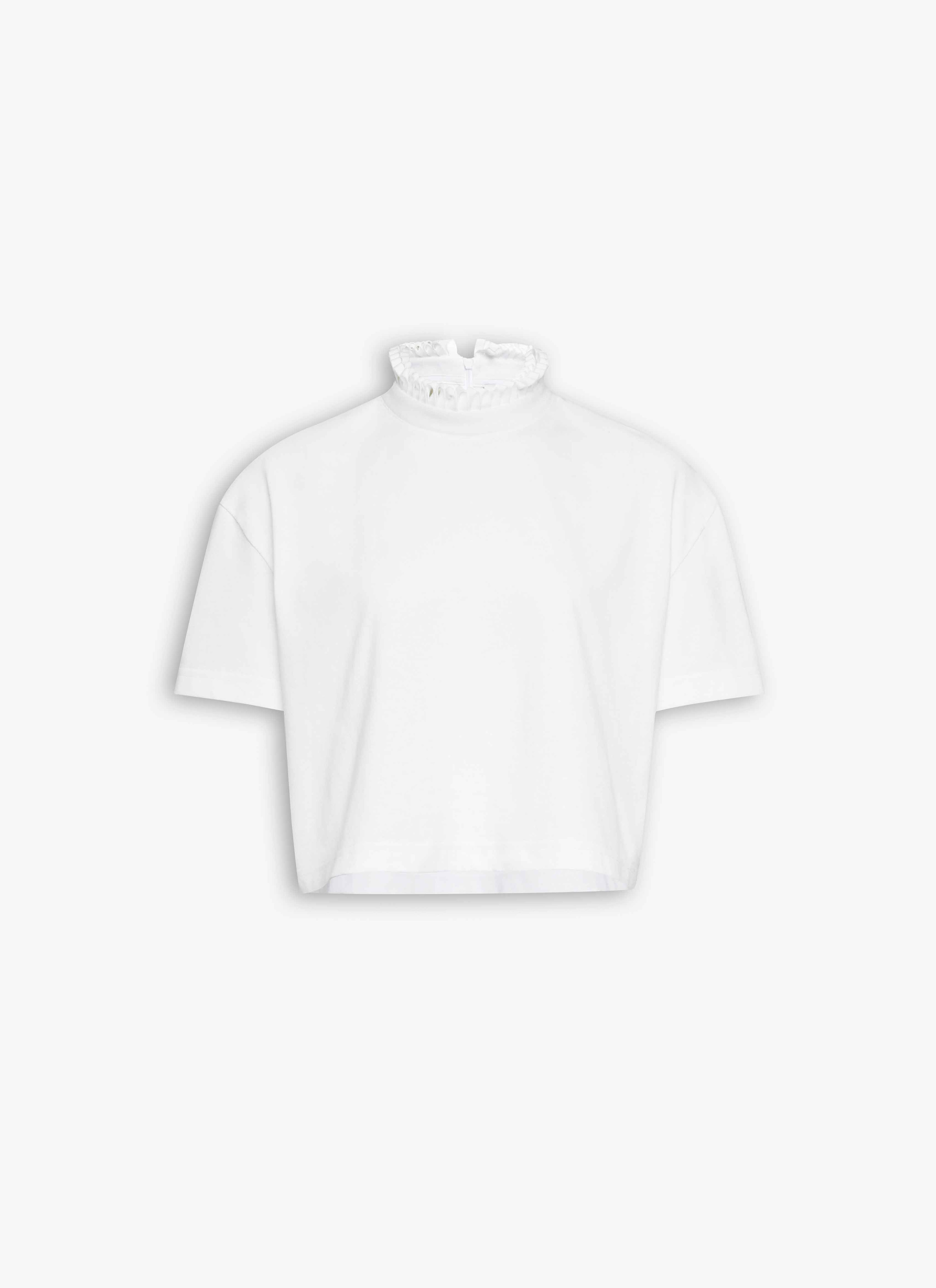 Cropped t-shirt in cotton jersey Short sleeves, high collar with textured edge and pleated volume Relaxed fit Made in Italy DETAILS MAIN MATERIAL : 100% COTTON PRODUCT REFERENCE : AA9I0009J010B-000