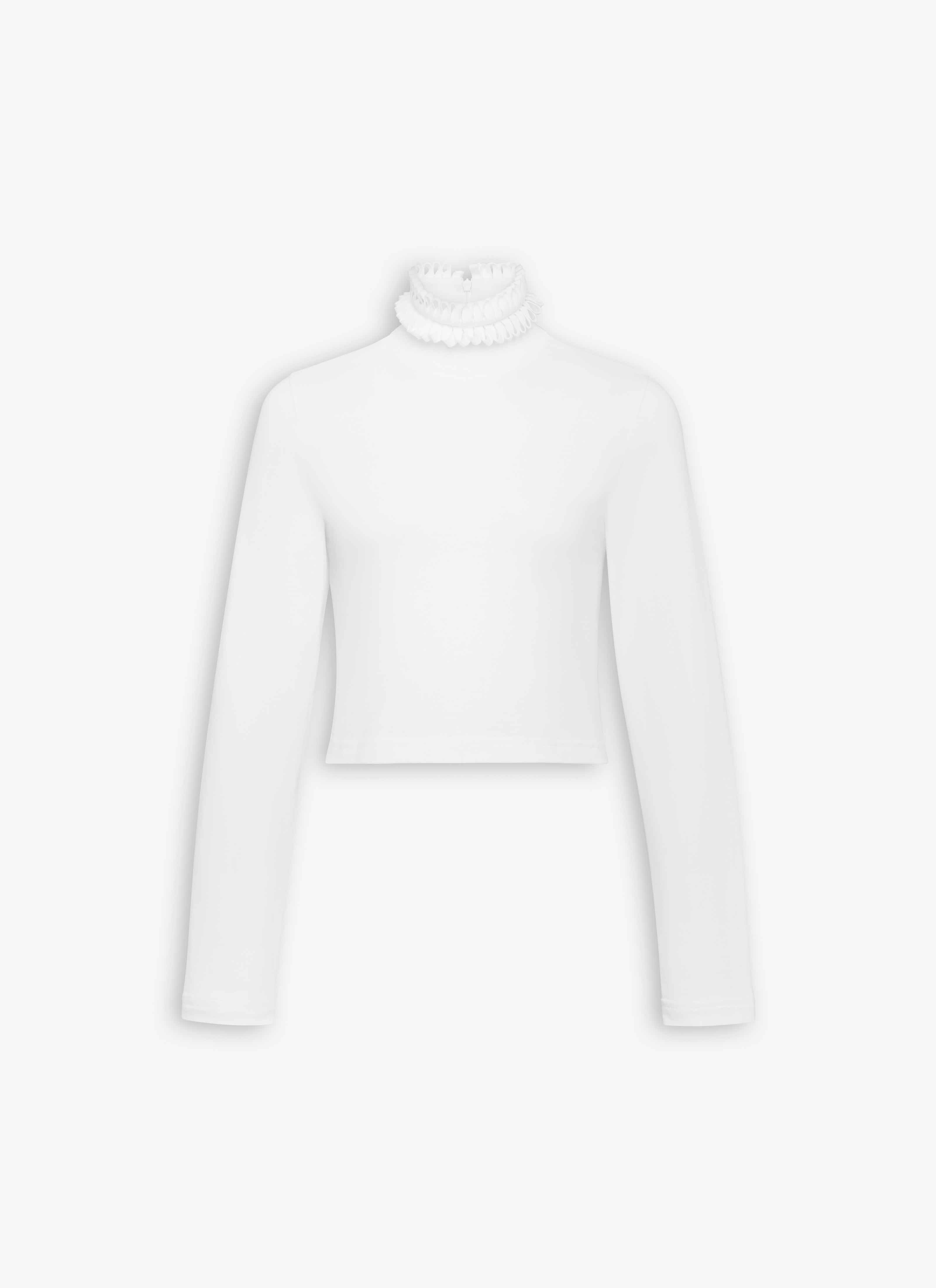 Cropped t-shirt in cotton jersey Long sleeves, high collar with textured edge and pleated volume Relaxed fit Made in Italy DETAILS MAIN MATERIAL : 100% COTTON PRODUCT REFERENCE : AA9I0010J010B-000