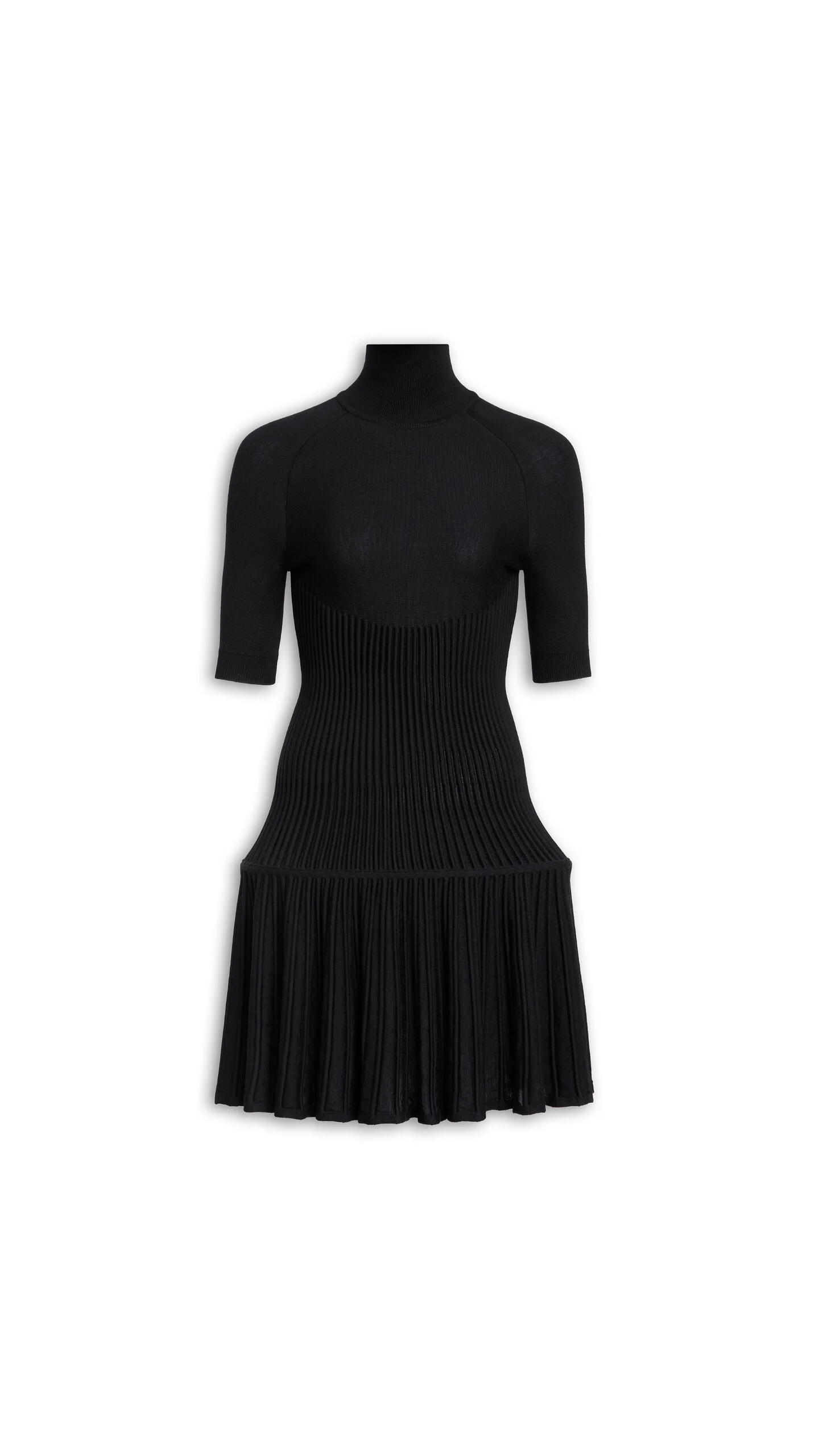 DETAILS Crinoline knitted dress in wool Mini length, high neck, short sleeves Fitted Ruffle hemline, ribbed neckline Made in Italy MATERIALS Highlights MAIN MATERIAL: 92% WOOL, 6% POLYAMIDE, 2% ELASTANE SLEEVE: 96% WOOL, 3% POLYAMIDE, 1% ELASTANE PRODUCT REFERENCE: AA9R2842K137C-995