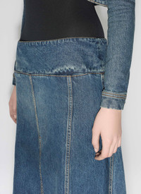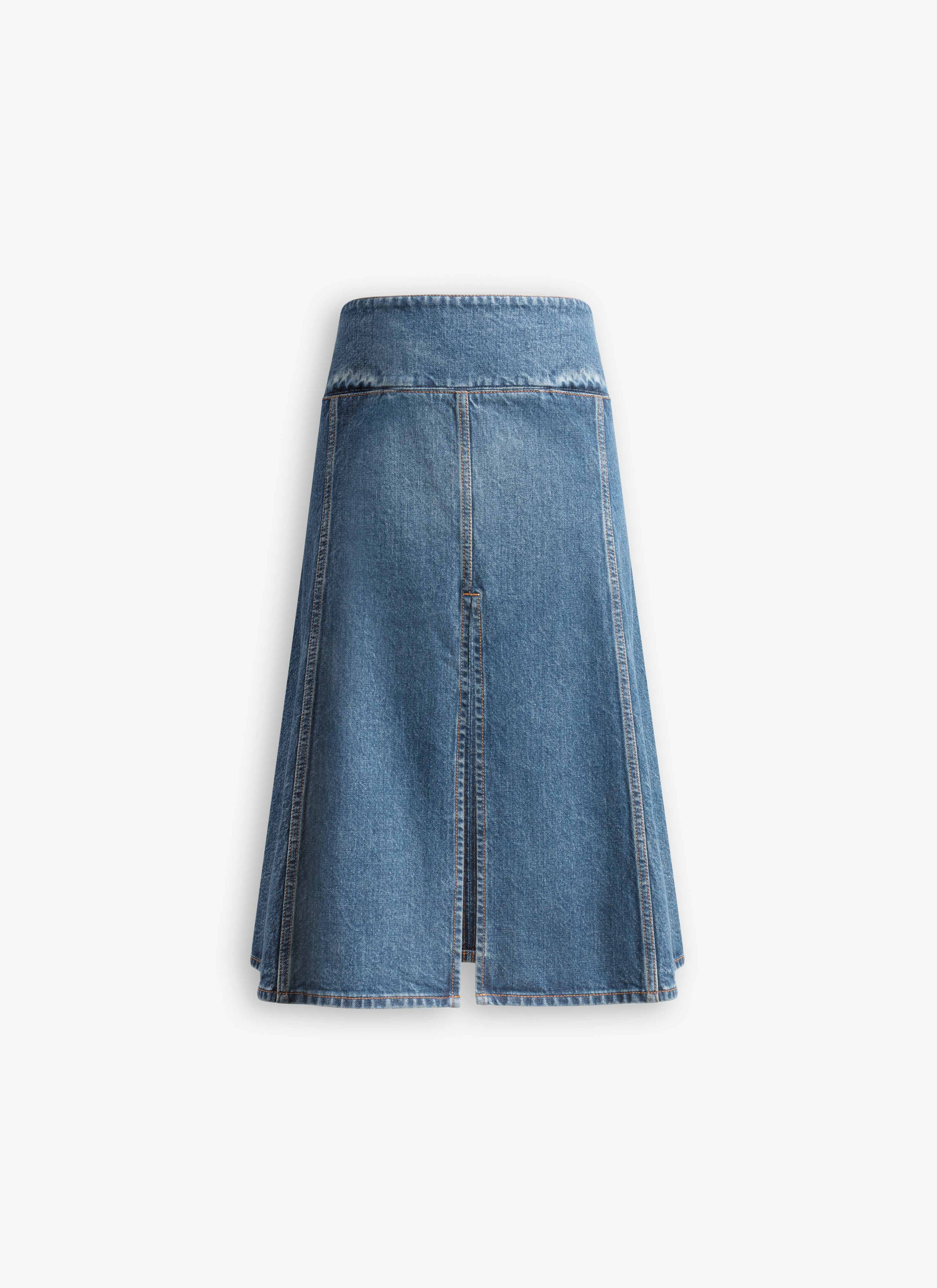 Slit skirt in vintage effect washed denim Low waist, mid-length, front seam pockets A-line cut Made in Italy DETAILS MAIN MATERIAL : 99% COTTON 1% POLYURETHANE PRODUCT REFERENCE : AA9J2437D007B-517