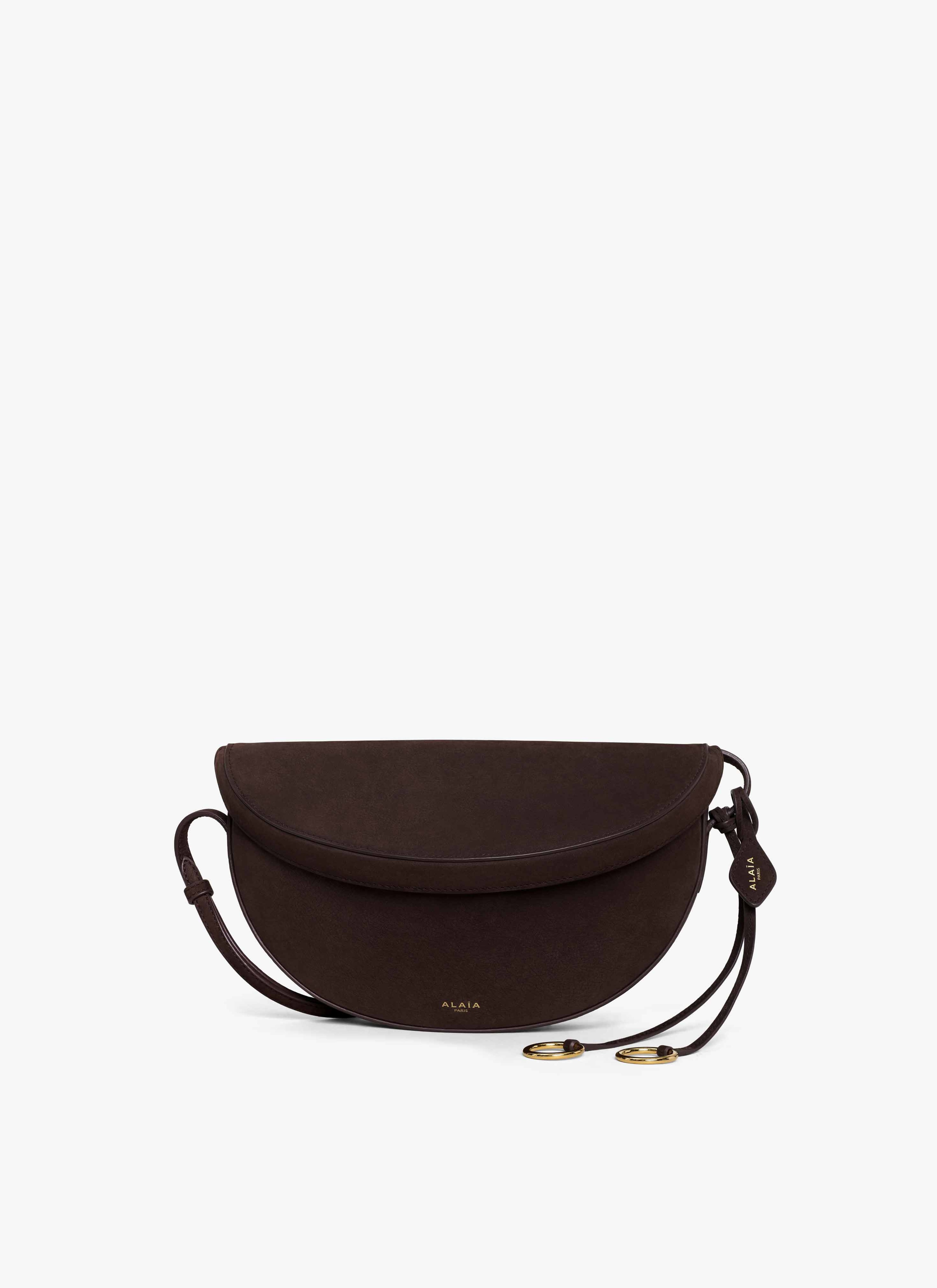 East West molded bag Curved shape that hugs the body Box flap opening with magnetic closure Ring metal charms with Alaia tag, inside card pocket Shoulder or cross body carry thanks to an adjustable strap Soft feel nubuck calf leather Dimensions (cm) : L 26,5 L X 16 H X D 10 Made in Italy DETAILS MAIN MATERIAL : 100% CALFSKIN LEATHER PRODUCT REFERENCE : AA1L2013CA214-733