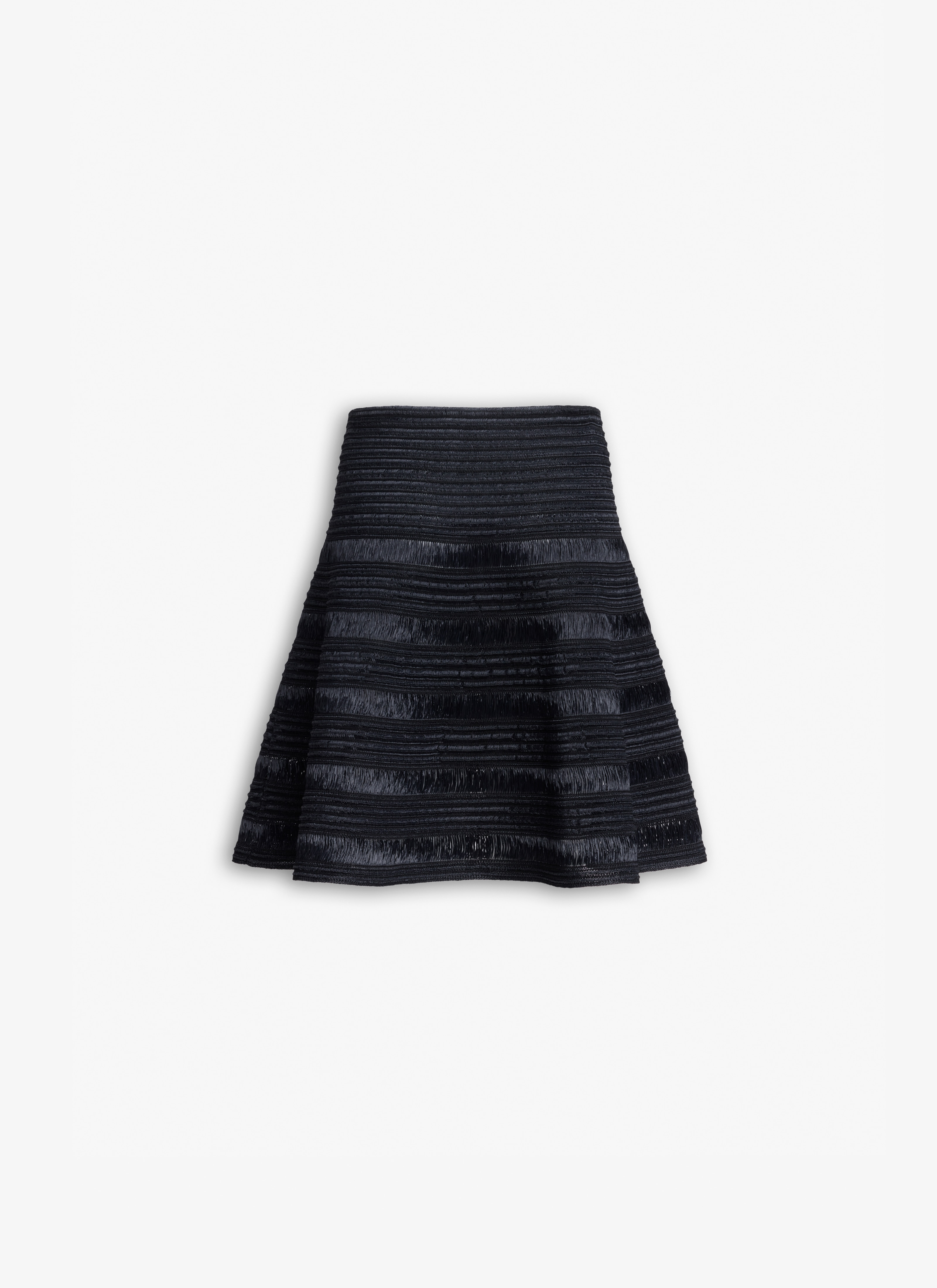 Bell-shaped skirt knitted in raffia bands creating a 3-D circular pattern Mid-rise, midi length, back invisible zip closure Made in Italy DETAILS MAIN MATERIAL : 100% VISCOSE PRODUCT REFERENCE : AA9J2349K067B - 995