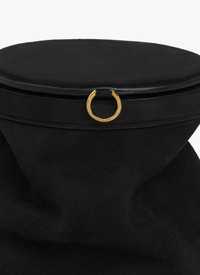 Slouched cylindrical bag with a bevelled top Magnetic closure with gold metallic ring Shoulder bag with an adustable strap Suede goatskin leather Dimensions (cm): L 17,5 X H 25 X D 17,5 Made in Italy DETAILS MAIN MATERIAL : 100% GOATSKIN LEATHER PRODUCT REFERENCE : AA1L2011CA328-999