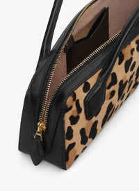 The clutch version of the emblematic Le Teckel bag Elongated shape, tubular short handles with decorative ties, double zip closure, small removable mirror on the inside pocket Hand carry Haircalf leather with leopard pattern & smooth calfskin leather Dimensions (cm) : L 31 X H 10 X D 7 Made in Italy DETAILS MAIN MATERIAL:100% CALFSKIN LEATHER MAIN LINING:100% CALFSKIN LEATHER PRODUCT REFERENCE : AA1S06026CA329 - 157