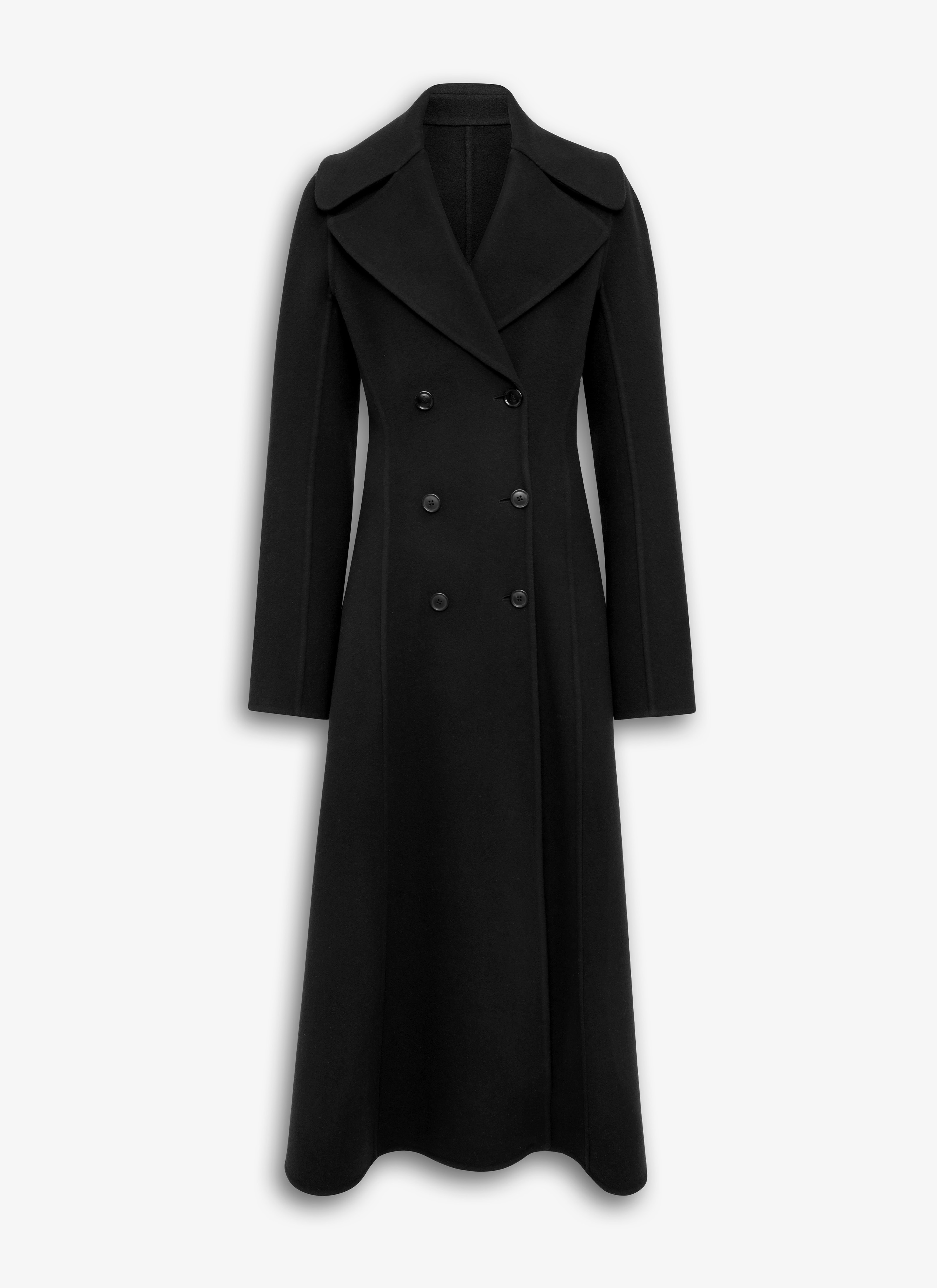Long fitted coat in double-faced wool Fit-and-flare shape Double-breasted fastening, matching topstitching, ankle length Made in Italy DETAILS COMPOSITION: 100% VIRGIN WOOL LINING: 100% CUPRO PRODUCT REFERENCE: AA9M1034T473A - 995