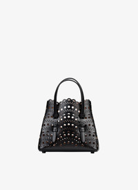 Micro tote bag, vienne pattern inspired by precious lace and moucharabieh architectural openwork, snap-fastening gusseted sides that expand, galvanised silver hardware, detachable strap, hand or shoulder carry. Dimensions (cm): l 16 x h 14 x d 8. Made in italy DETAILS COMPOSITION: 100% CALFSKIN LINING: 100% LAMBSKIN PRODUCT REFERENCE: AA1S06716C0A29 - 999