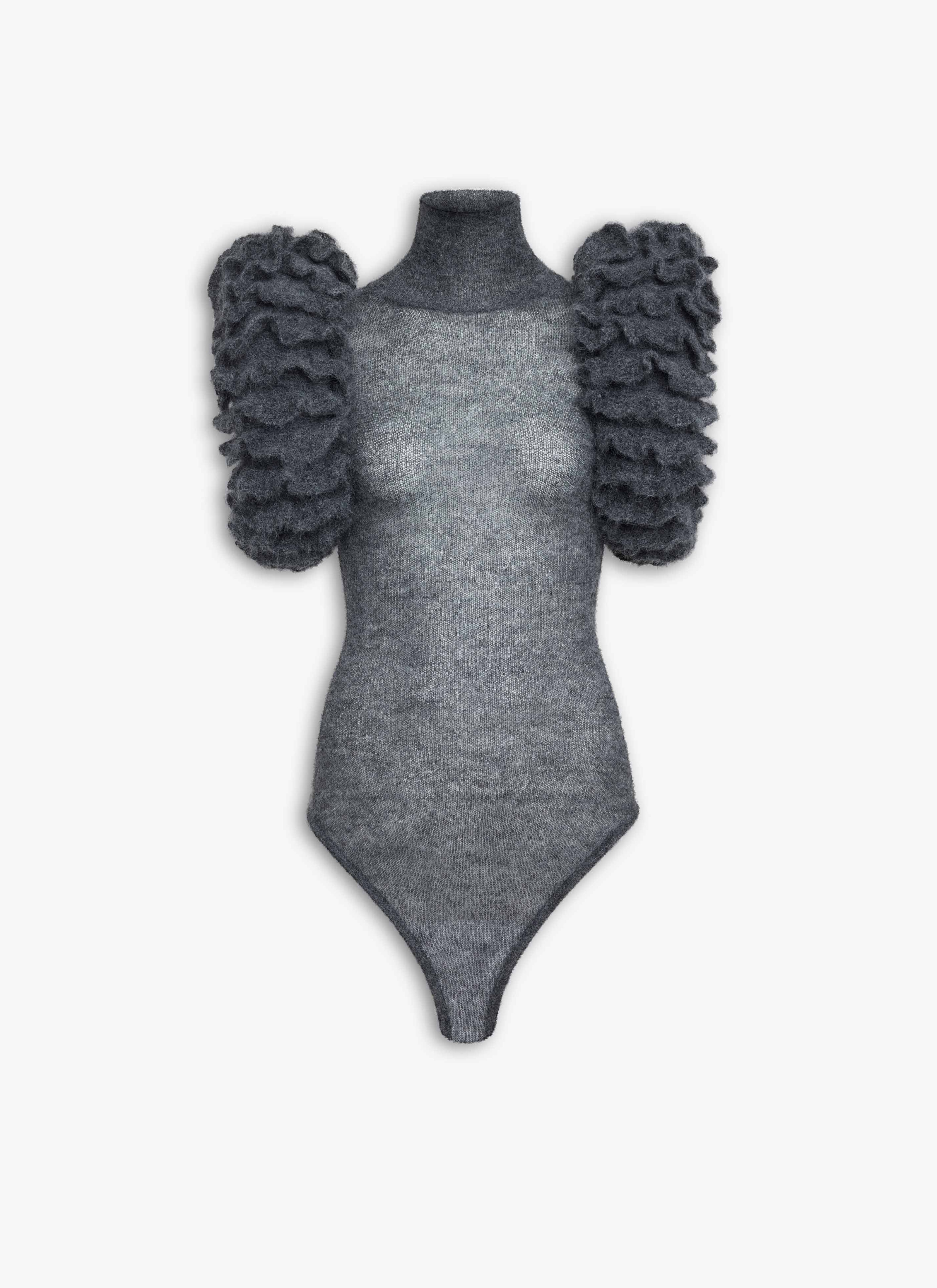 MOHAIR KNIT SCULPTURAL RUFFLE BODYSUIT