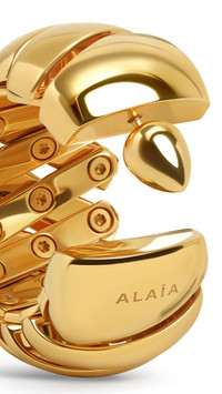DETAILS Expandable metal net earrings Pierced ears Aluminium Adjustable hoop size, Max diameter: 6,6 cm Made in Italy MATERIALS Highlights MAIN MATERIAL: 100% ALUMINIUM PRODUCT REFERENCE: AAJE1027E005-220