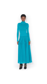 DETAILS Peplum dress in matte fluid viscose Maxi length, high ribbed neck, long sleeves Unlined, integrated crinoline adding structure to skirt Made in Italy MATERIALS Highlights MAIN MATERIAL: 68% VISCOSE, 31% POLYAMIDE, 1% ELASTANE SKIRT: 76% VISCOSE, 24% POLYAMIDE SLEEVE: 76% VISCOSE, 24% POLYAMIDE COLLAR: 64% VISCOSE, 35% POLYAMIDE, 1% ELASTANE PRODUCT REFERENCE : AA9R2848K140C-556