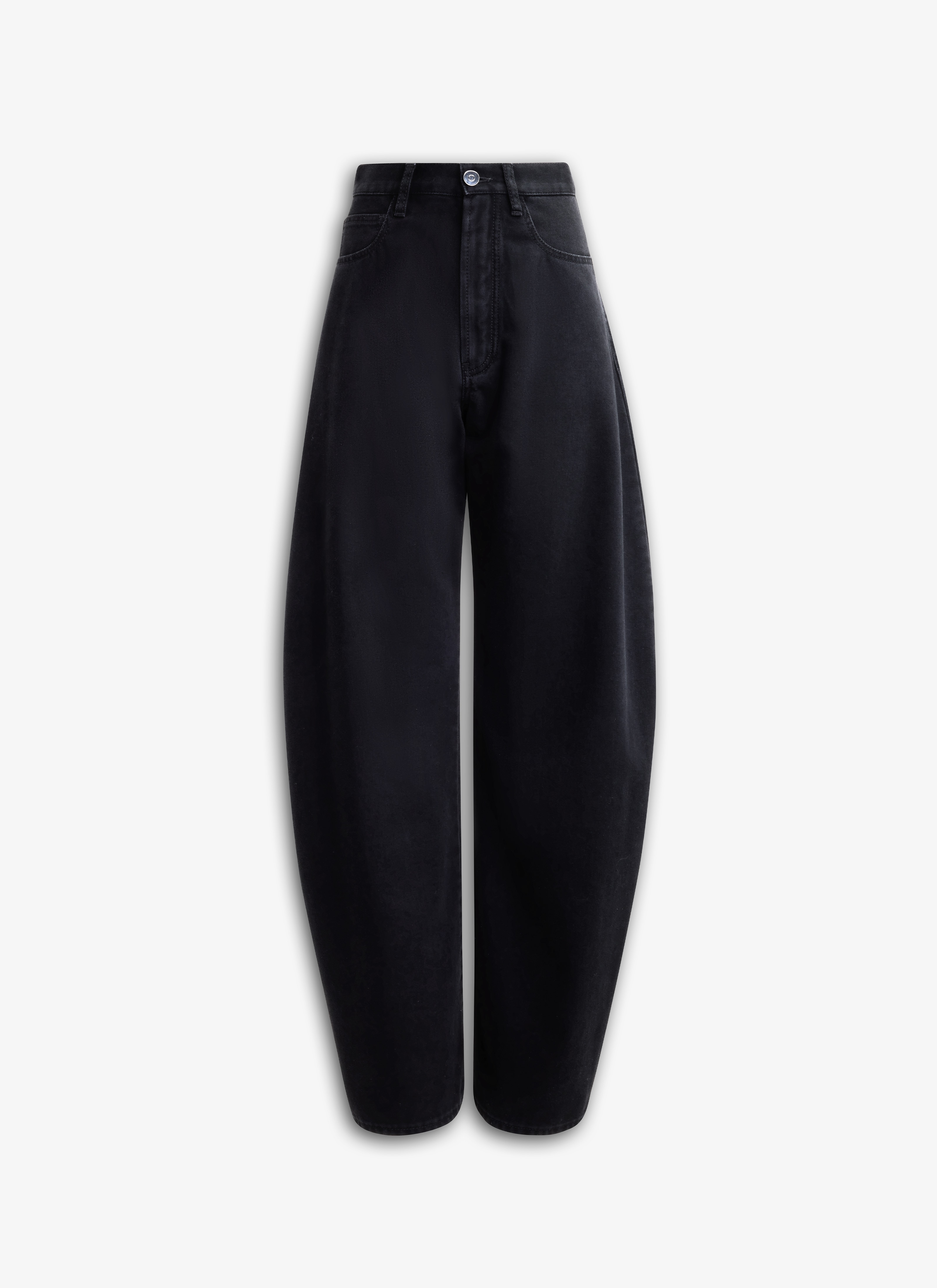 Black denim barrel-leg jeans Curved cut High waist, zipper, belt loops Made in Italy DETAILS COMPOSITION: 99% COTTON, 1% POLYURETHANE LINING POCKET: 65% POLYESTER, 35% COTTON PRODUCT REFERENCE: AA9P0176D003A - 995