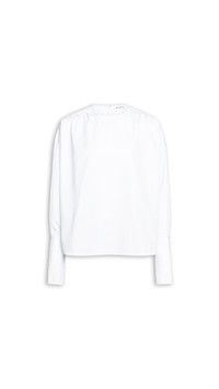 DETAILS Ruched shirt in striped poplin Round collar, long sleeves, buttoned cuffs Regular fit Pull on, back button, gathered fabric from the shoulders, curved hem finish Made in Italy MATERIALS Highlights MAIN MATERIAL:100% COTTON PRODUCT REFERENCE: AA9C1003W124C-031