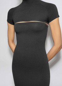 Cut-out dress in second-skin knit High neck, short sleeves Modular two-piece garment Bodycon fit Made in Italy DETAILS MAIN MATERIAL : 75% POLYAMIDE 25% ELASTANE PRODUCT REFERENCE : AA9R2802K127B-995