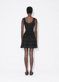 Sleeveless crinoline skater dress, scoop neck, volume exploding from the waist in three dimensional stitches, carry-over shape, knitted in high shine viscose. Made in Italy DETAILS COMPOSITION: 92% VISCOSE, 7% POLYAMIDE, 1% ELASTHANNE PRODUCT REFERENCE: AA9R22462M712 - 995