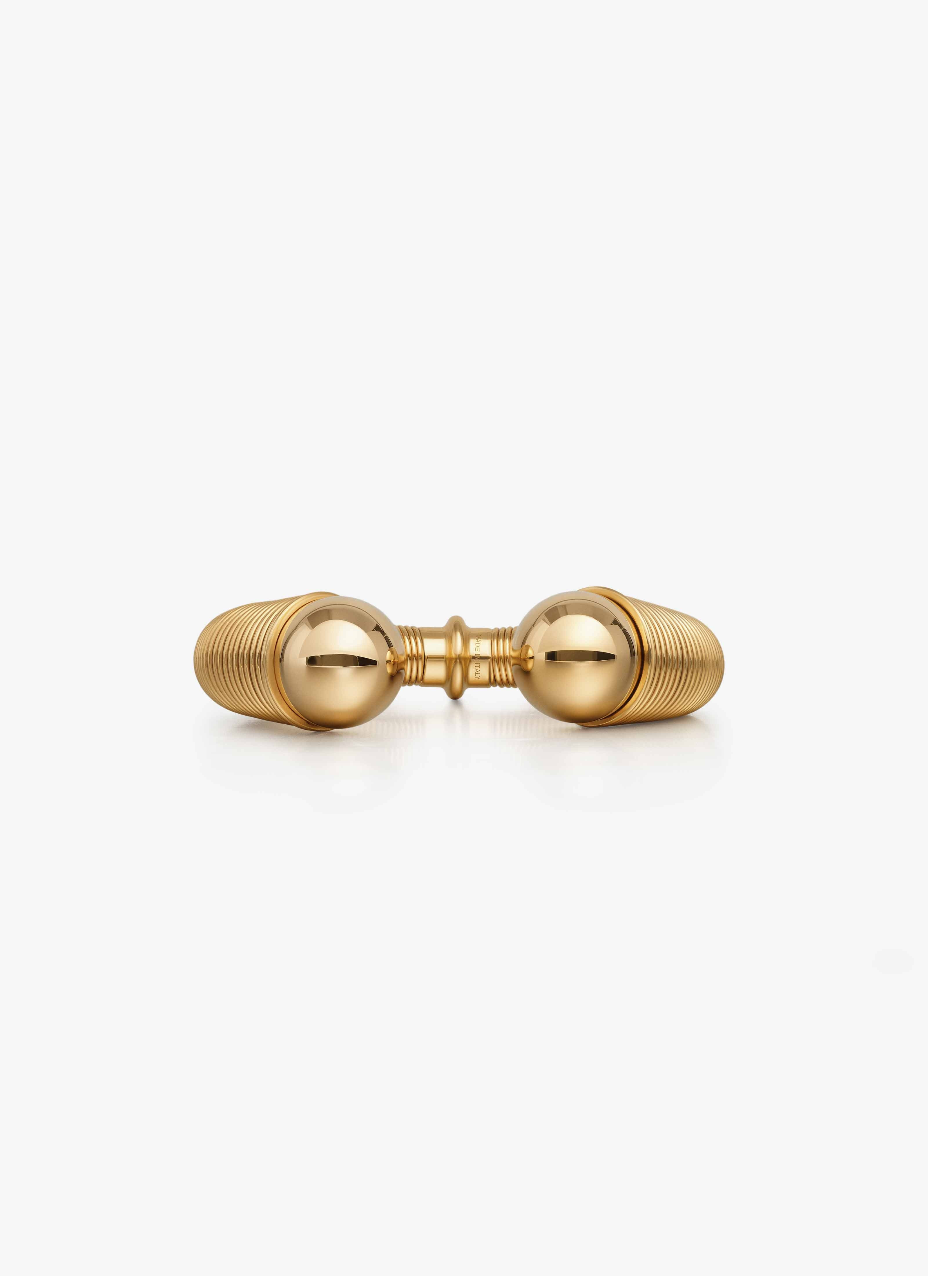 Cuff made of a thin entwined wire Tonal metal beads at the ends Mix of stainless steel and brass Made in Italy DETAILS MAIN MATERIAL:100% STEEL SECONDARY MATERIAL:100% BRASS PRODUCT REFERENCE : AA2B185LA042 - 220