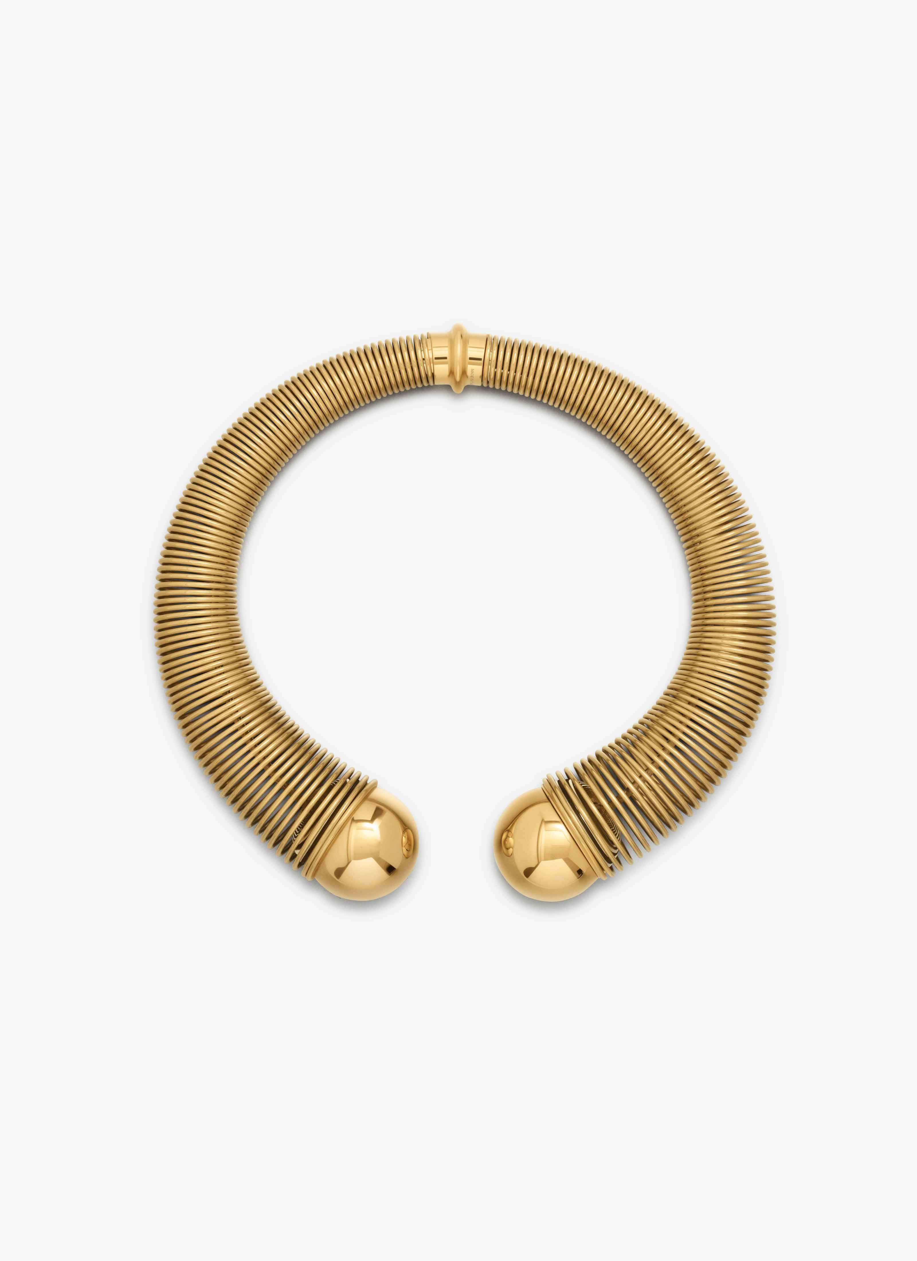 Choker made of a thin entwined wire Tonal metal sphere at the ends Mix of stainless steel and brass Made in Italy DETAILS MAIN MATERIAL:100% STEEL SECONDARY MATERIAL:100% BRASS PRODUCT REFERENCE : AA2B126LA042 - 220