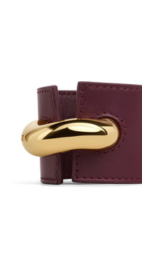 DETAILS Wide leather cuff adorned with a scultural metal element Push button closure Calf leather and brass Width: 4,5 cm Made in Italy MATERIALS Highlights MAIN MATERIAL: 80% CALFSKIN LEATHER 20% BRASS PRODUCT REFERENCE: AAJB1019I171-325