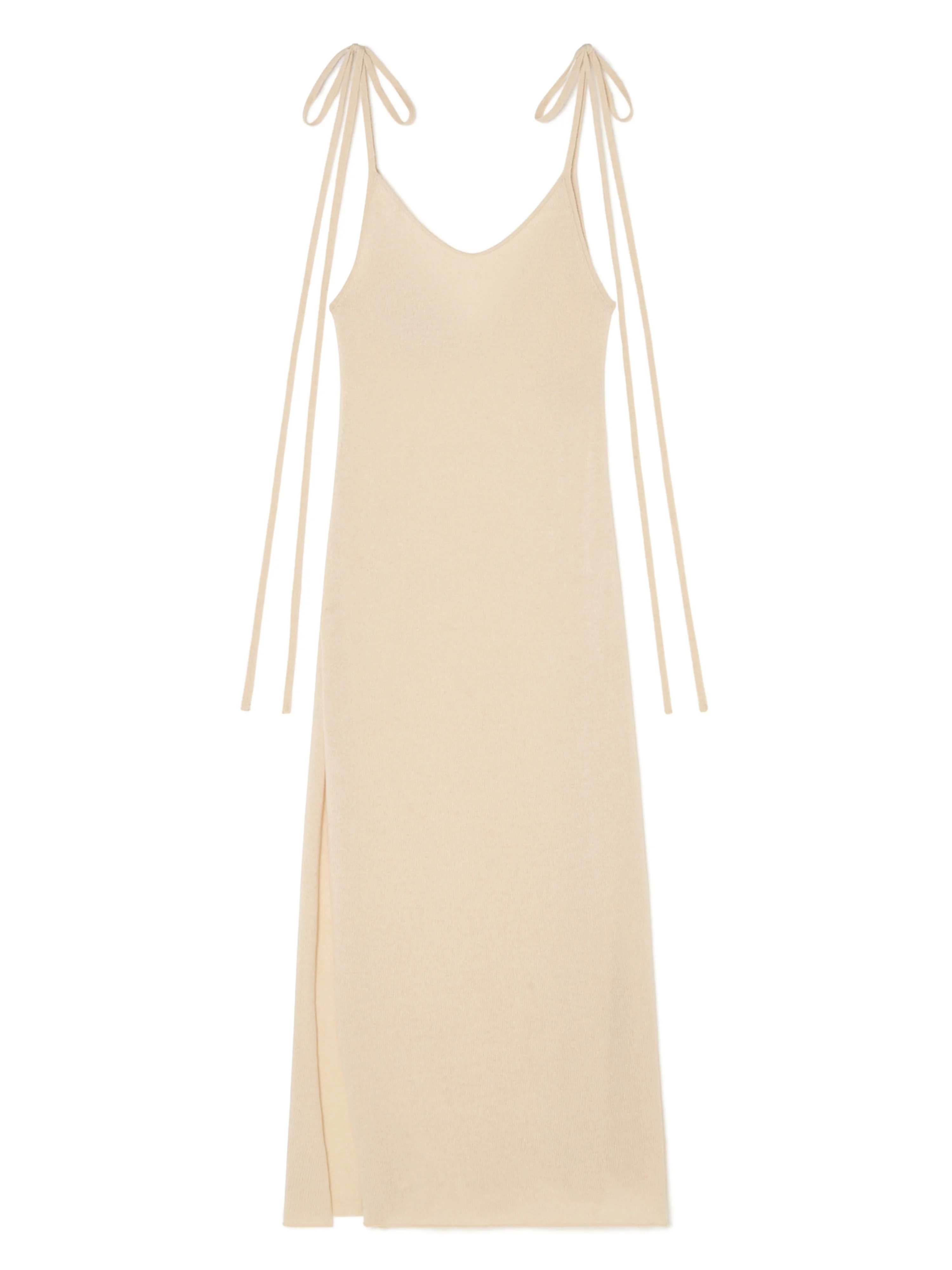 The Alanui Finest line offers an elevated take on timeless wardrobe essentials and an invitation to rediscover a slower, more authentic way of living. The Alanui Finest Dress elegantly embraces the body with the incredibly soft sensation of a cashmere and cotton blend, crafted in a lightweight rib knit. Complete with long, adjustable straps and a mid-height slit. DETAILS - Product Code LWHI05DR26KNI0020300 - Crafted from 64% Cashmere 36% Cotton Product weight: 423 grTaking three hours to be knitted and another three to be assembled. - The model is 180 cm and wears a size M. - The item fits true to size.