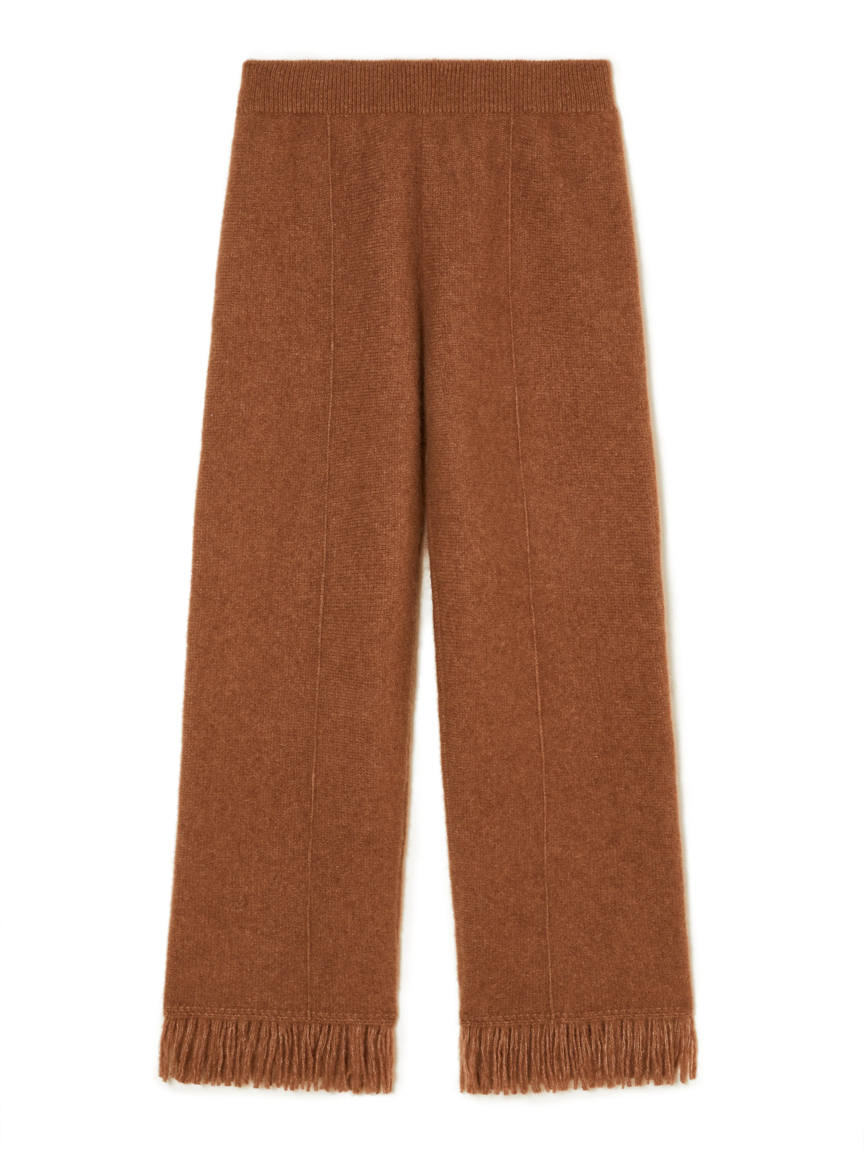 Part of our luxury wellbeing line, the Alanui Finest Pants pairs a relaxed wide-leg fit with the super soft sensation of a cashmere and silk blend in Milano stitch. Each piece in the Alanui Finest line has been specially crafted to offer comfort and timeless appeal. Featuring ribbed waistband and fringed cuffs. DETAILS - Product Code LWHG001E25KNI0016200 - Made In Italy - Crafted from 71% Cashemere, 19% Silk, 10% Polyester - This item takes two hour and an half to be knitted and another two to be assembled. - The model is 177 cm and wears a size M. - This item fits true to size.
