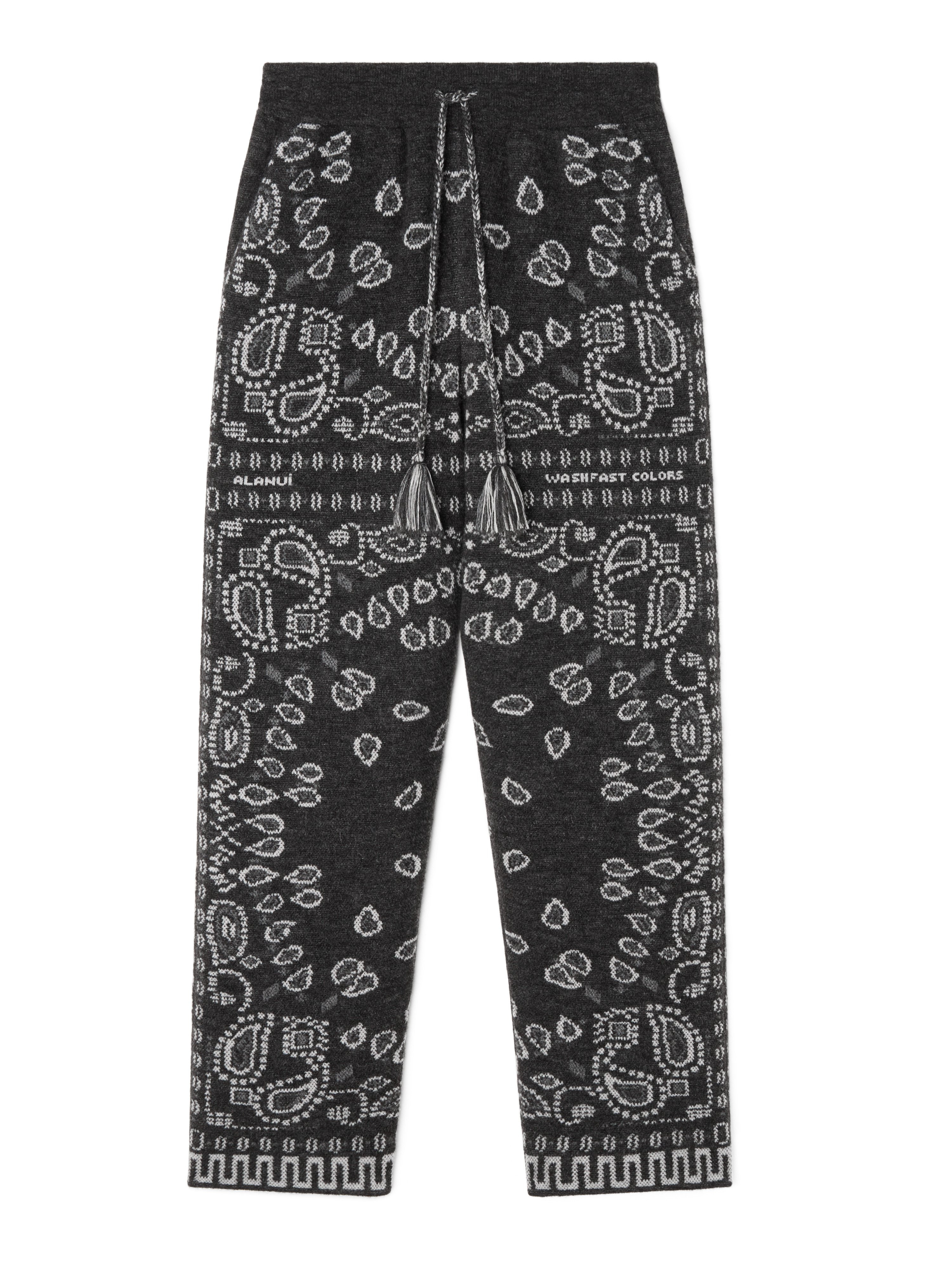 Crafted from a blend of yarns using double jacquard knit, the Bandana Jacquard Pants are embellished with the iconic Bandana Pattern and hand-braided drawstring and tassels. Featuring a relaxed jogger fit. Pair with the matching shirt for a bold total look. DETAILS - Product Code LMHG016E25KNI0010706 - Crafted from 57% Virgin Wool 23% Alpaca 16% Polyammide 4% Wool. - The model is 189 CM and wears a size M. - This item fits true to size.