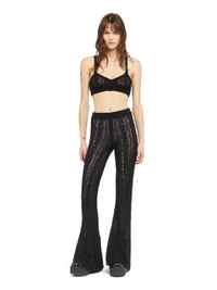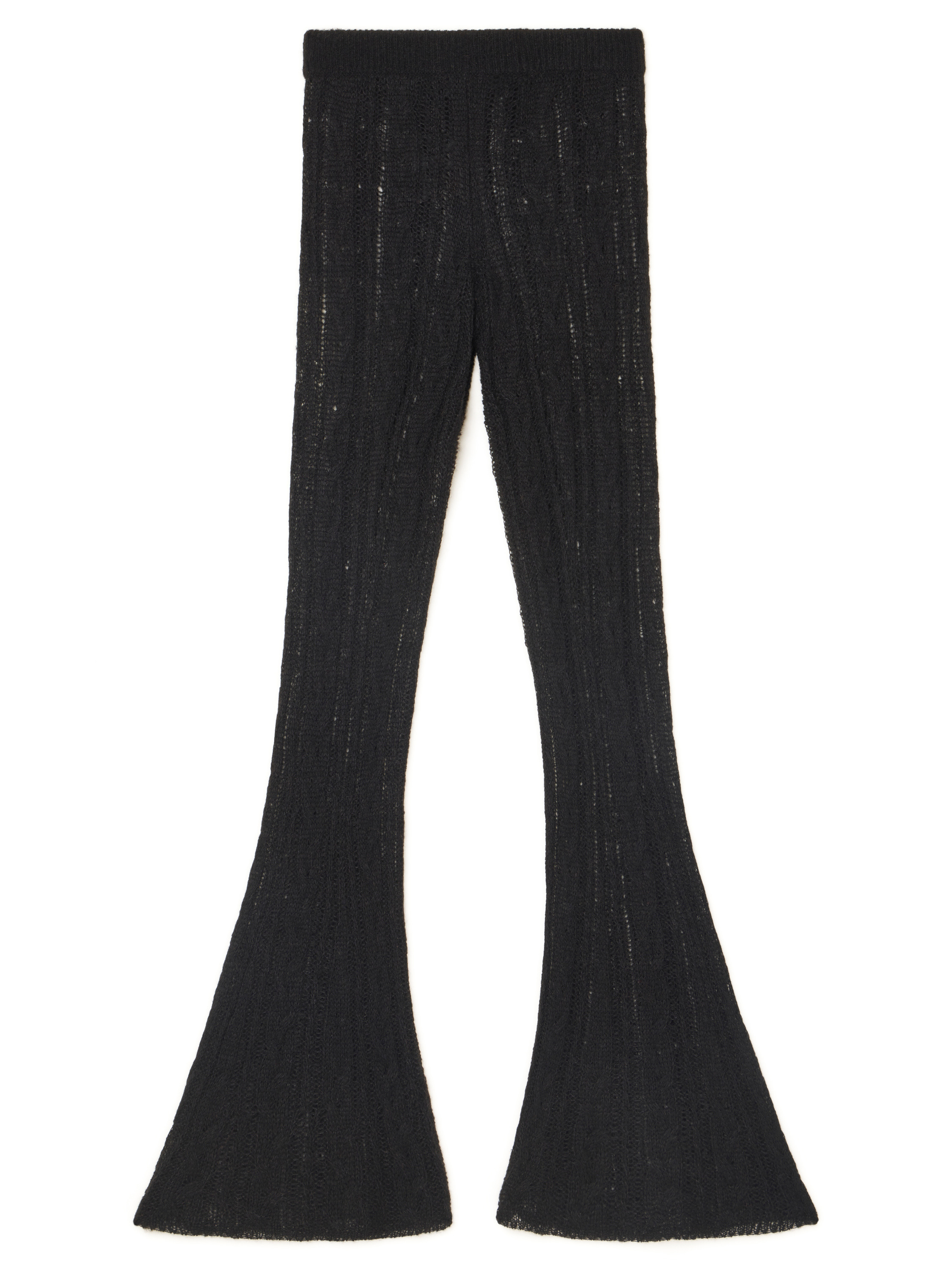 This Fall / Winter 2025, Alanui heads into the wilds of California. Inspired by the spirit of desert wanderers, the Desert Drift Pants are crafted from a barely-there baby alpaca, cashmere, and silk blend with a braided motif in all-over cable stitch. Featuring a flared style and ribbed trims. DETAILS - Product Code LWHG017E25KNI0011000 - Crafted from 40% Alpaca 30% Cashmere 30% Silk. - The model is 176 CM and wears a size M. - This item fits true to size.
