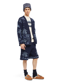 This Fall / Winter 2025, Alanui celebrates the splendor of the natural world. Palms, ocean waves, and hibiscus flowers form a textured foulard motif to remind us that paradise is all around us. The Glimpse of Eden Cardigan is lovingly crafted from a cashmere, wool, and cotton blend using intricate double jacquard knit on a classic cardigan fit. Finished with real horn buttons. DETAILS - Product Code LMHB027E25KNI0034642 - Crafted from 79% Wool 12% Cashmere 8% Cotton 1% Polyammide. - The model is 189 CM and wears a size M. - This item fits true to size.