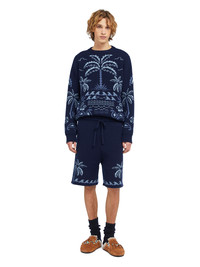 This Fall / Winter 2025, Alanui celebrates the splendor of the natural world. Palms and ocean waves form a textured foulard motif on the Glimpse of Eden Shorts, lovingly crafted from a cashmere, wool, and cotton blend using double jacquard knit. DETAILS - Product Code LMHM004E25KNI0024642 - Crafted from 79% Wool 12% Cashmere 9% Cotton. - The model is 189 CM and wears a size M. - This item fits true to size.