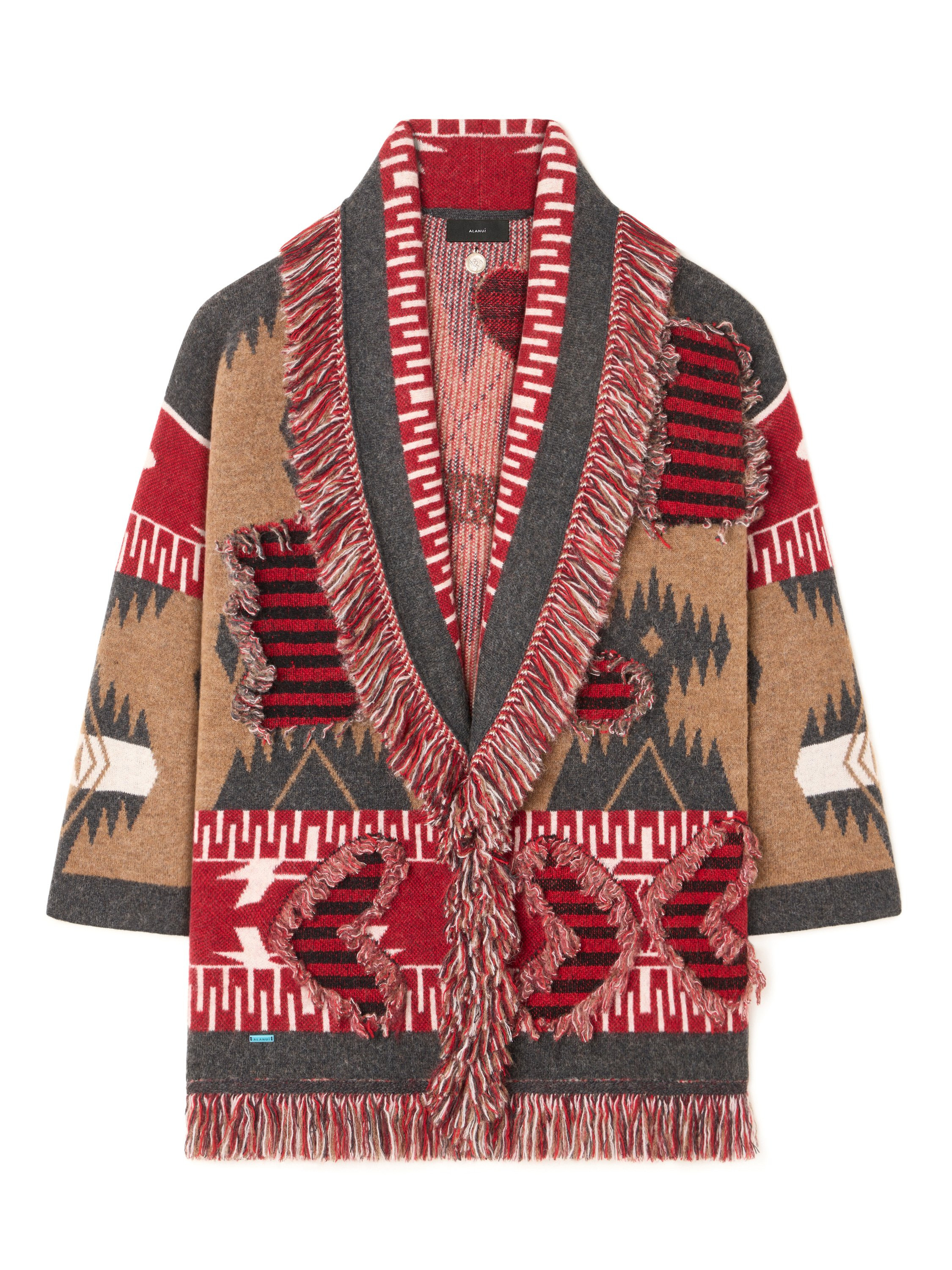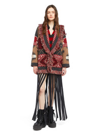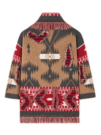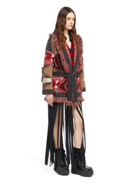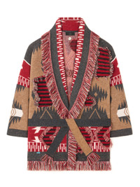 For Fall / Winter 2025, Alanui journeys to Seattle, drawing on the city’s rich musical heritage for the Grunge Anthem Cardigan. Crafted from a soft alpaca and wool blend, contrasting striped inserts with fil coupe detailing meet the Alanui Iconic Pattern in double jacquard knit, infusing the style with raw energy. Finished with a two-tone tie belt and multicolored fringed edges. DETAILS - Product Code LWHB064E25KNI00A6207 - Crafted from 62% Wool 22% Alpaca 16% Polyammide. - The model is 178 CM and wears a size M. - This item fits true to size.