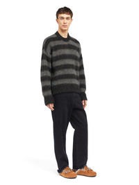 This Fall / Winter 2025, a trip around the world takes Alanui to Seattle. A direct nod to the underground scene, the Grunge Stripes Sweater revives a signature look with two-tone stripes in a brushed alpaca blend for a soft, worn-in feel. Featuring a crewneck fit and ribbed trims. DETAILS - Product Code LMHE033E25KNI0060706 - Crafted from 55% Alpaca 10% Wool 35% Polyammide. - The model is 189 CM and wears a size M. - This item fits true to size.