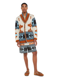 A signature style that gets better with every adventure, the Icon Jacquard Cardigan is the wardrobe staple that was made for traveling. Pairing the original Icon fit with the Iconic Alanui Pattern to create a timeless luxury style, each cardigan is meticulously crafted from the finest cashmere using double jacquard knit. Featuring real horn buttons and multicolored fringed edges. DETAILS - Product Code LMHB038R25KNI0010160 - Made In Italy - Crafted from 100% Cashmere. - This item weighs 962 gr and takes four hours and an half to be knitted and another six to be assembled. - The model is 189 cm and wears a size M. - This item fits true to size.