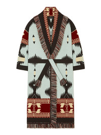 Evolution of the original cardigan style, the Icon Jacquard Coat is finely crafted to keep you warm and stylish this winter. Made in Italy from extra-fine virgin Merino wool using double jacquard knit, the Icon Jacquard Coat pairs the Iconic Alanui Pattern with an elegant long Icon fit. Featuring a two-tone tie belt and multicolored fringed edges. DETAILS - Product Code LWHQ003R26KNI001416E - Crafted from 100% Virgin Wool Product weight: 1610 grTaking six and a half hours to be knitted and another six to be assembled. - The model is 180 cm and wears a size M. - The item fits true to size.
