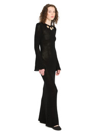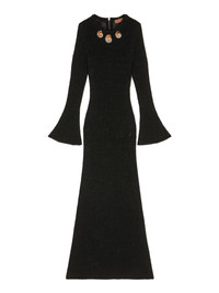 This Spring / Summer 2026, Alanui celebrates the simple beauty of rediscovery. Crafted in Italy from a recycled cotton blend in jersey stitch, the Island Memories Dress features a long silhouette with flared sleeves and real shell details at the collar, recalling time spent on distant shores. DETAILS - Product Code LWHI05FR26KNI0011010 - Crafted from 60% Polyester 40% Cotton Applications: 100% Seashell Product weight: 1100 grTaking four and a half hours to be knitted and another four to be assembled. - The model is 180 cm and wears a size M. - The item fits true to size.