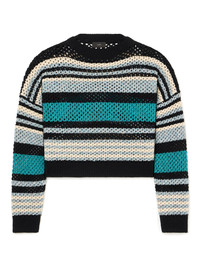 Alanui journeys into the blue this Spring / Summer 2026. Knitted from a cotton blend using openwork net stitching, the Ocean Stripes Sweater captures the ever-shifting reflections of the water in a play of optical textures and techniques. Complete with ribbed finishes. DETAILS - Product Code LWHE080R26KNI0011084 - Crafted from 67% Cotton 21% Polyester 12% Polyamide Product weight: 750 grTaking three hours to be knitted and another two and a half to be assembled. - The model is 180 cm and wears a size M. - The item fits true to size.