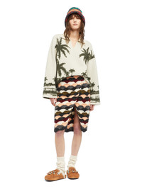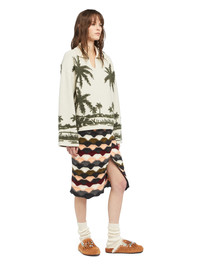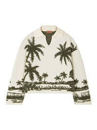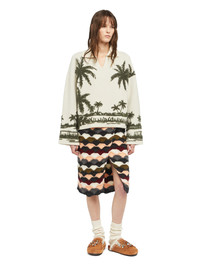 This Fall / Winter 2025, Alanui celebrates the power of nature. Crafted in Italy from a recycled cashmere and wool blend using 3D double jacquard knit, the Palm Grove Tales Polo pairs a postcard-perfect Hawaiian scene with the signature boxy style. DETAILS - Product Code LWHV002E25KNI0020F56 - Crafted from 91% Cashmere 5% Wool 4% Polyammide. - The model is 176 CM and wears a size M. - This item fits true to size.