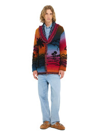 This Spring / Summer 2026, Alanui celebrates the eternal dialogue between sea, sky, and spirit. The Sunset Stories Cardigan tells a tale of light and color through a multicolor 3D double jacquard knit, enhanced with printed yarns and a sponge stitch that creates a richly textured surface. Crafted in Italy from a blend of 66% recycled cashmere and cotton, it features the original Icon fit, button closure, and multicolored fringed edges. DETAILS - Product Code LMHB039R26KNI0028410 - Crafted from 66% Cashmere 30% Cotton 4% Wool Product weight: 749 grTaking seven hours to be knitted and another six to be assembled. - The model is 189 cm and wears a size M. - The item fits true to size.