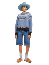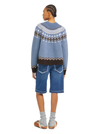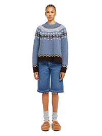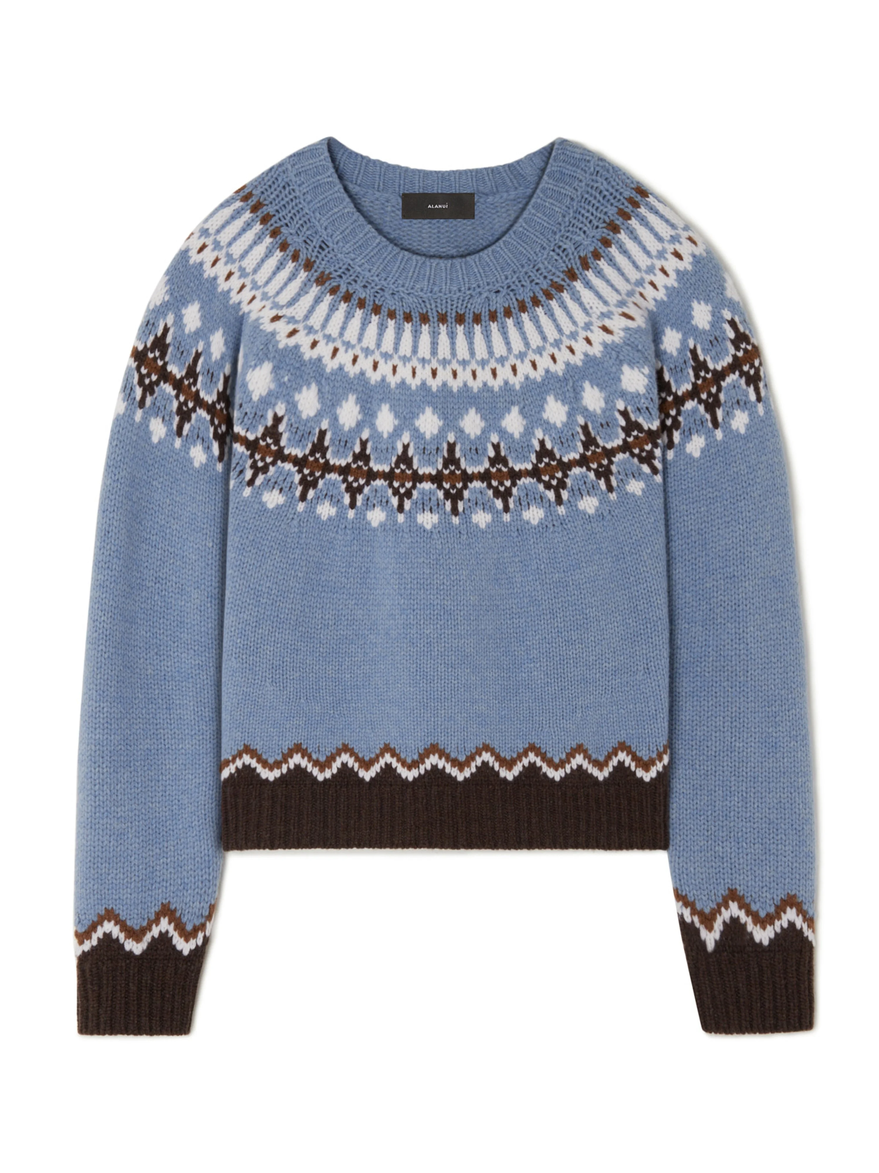 Alanui answers the call of the wild this season. Crafted from virgin wool, the cozy Sweet Winter Sweater pays tribute to classic Nordic style with a reimagined Fair Isle motif in placed jacquard knit. Featuring a raglan crewneck fit and ribbed trims. DETAILS - Product Code LWHE061E25KNI0014284 - Crafted from 100% Virgin Wool. - The model is 180 CM and wears a size M. - This item fits true to size.