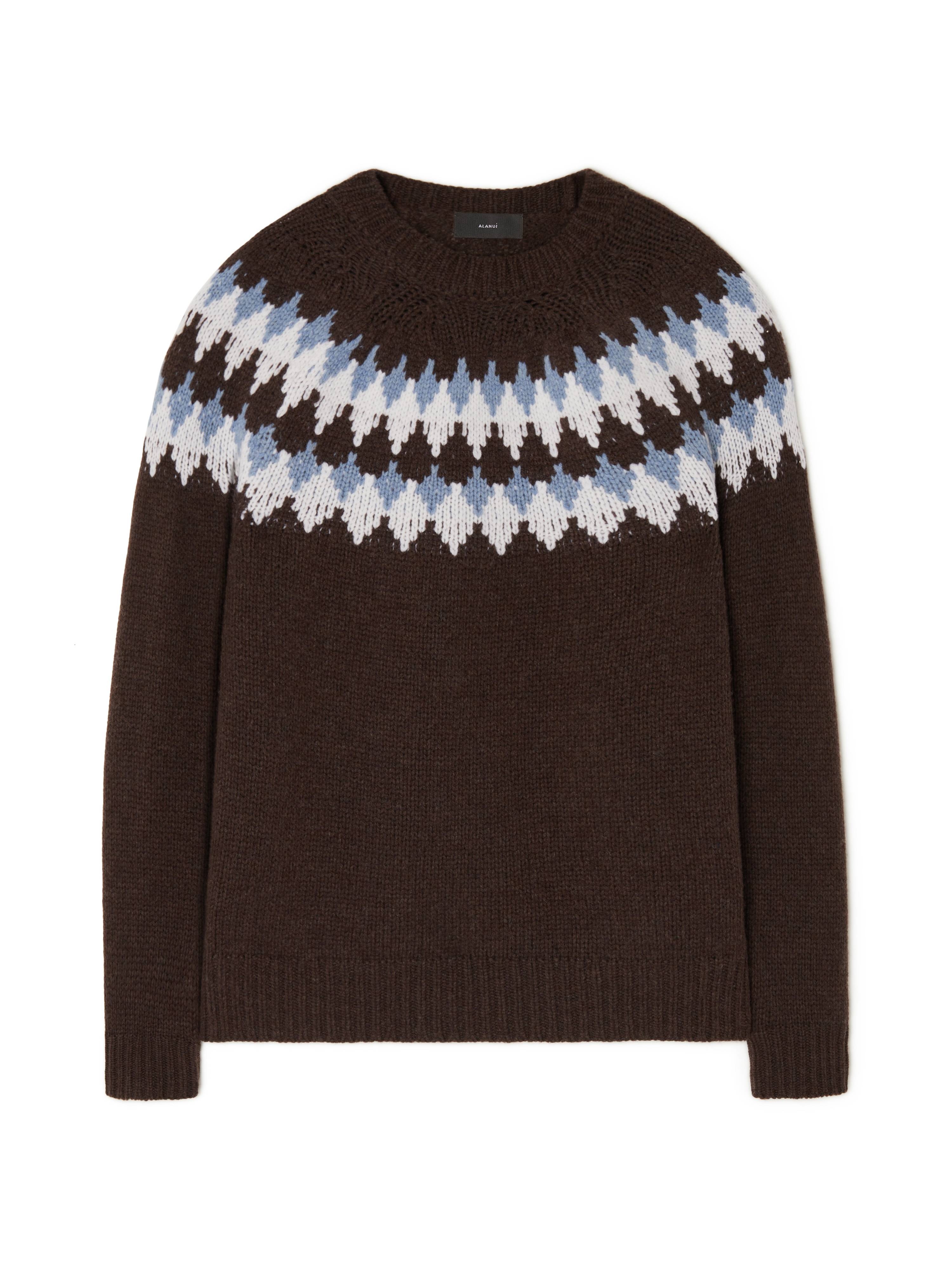 Crafted from virgin wool using jacquard knit, the Sweet Winter Sweater is an Alanui take on Nordic knitwear for a classic winter look. Featuring a multicolored knit, raglan crewneck fit and ribbed finishes. DETAILS - Product Code LMHE016E24KNI0016E84 - Made In Italy - Crafted from 100% Virgin Wool. - This item takes three hours to be knitted and another one hour and an half to be assembled. - The model is 187 cm and wears a size M. - This item fits true to size.