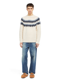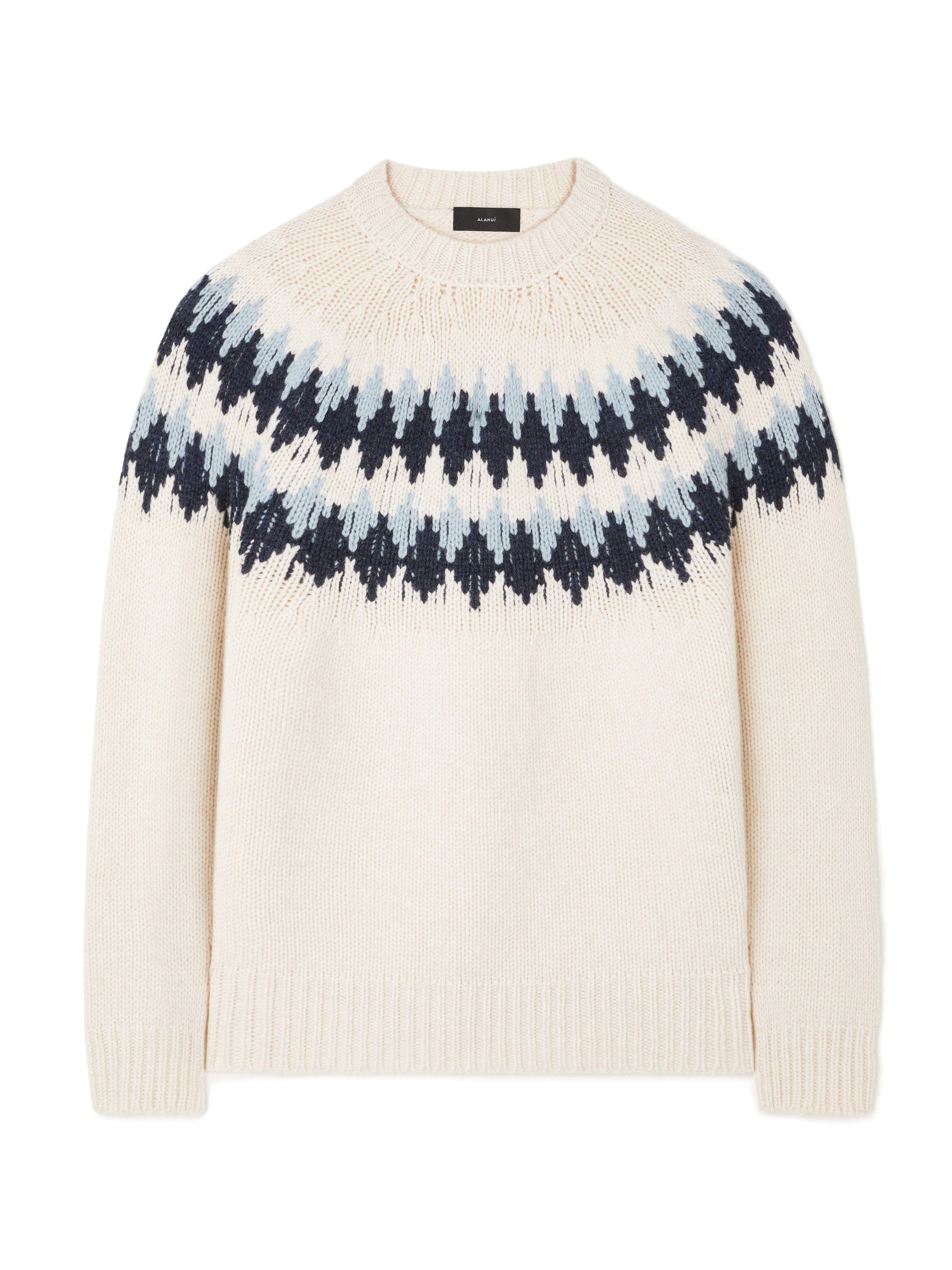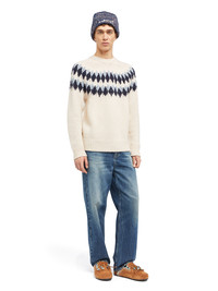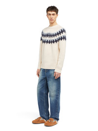 Alanui answers the call of the wild this season. Crafted from virgin wool, the cozy Sweet Winter Sweater pays tribute to classic Nordic style with a reimagined Fair Isle motif in placed jacquard knit. Featuring a raglan crewneck fit and ribbed trims. DETAILS - Product Code LMHE016E25KNI001OF42 - Crafted from 100% Wool. - The model is 189 CM and wears a size M. - This item fits true to size.