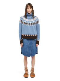 Alanui answers the call of the wild this season. Crafted from virgin wool, the cozy Sweet Winter Turtleneck pays tribute to classic Nordic style with a reimagined Fair Isle motif in placed jacquard knit. Featuring a raglan turtleneck fit and ribbed trims. DETAILS - Product Code LWHF001E25KNI0014284 - Crafted from 100% Virgin Wool. - The model is 176 CM and wears a size M. - This item fits true to size.