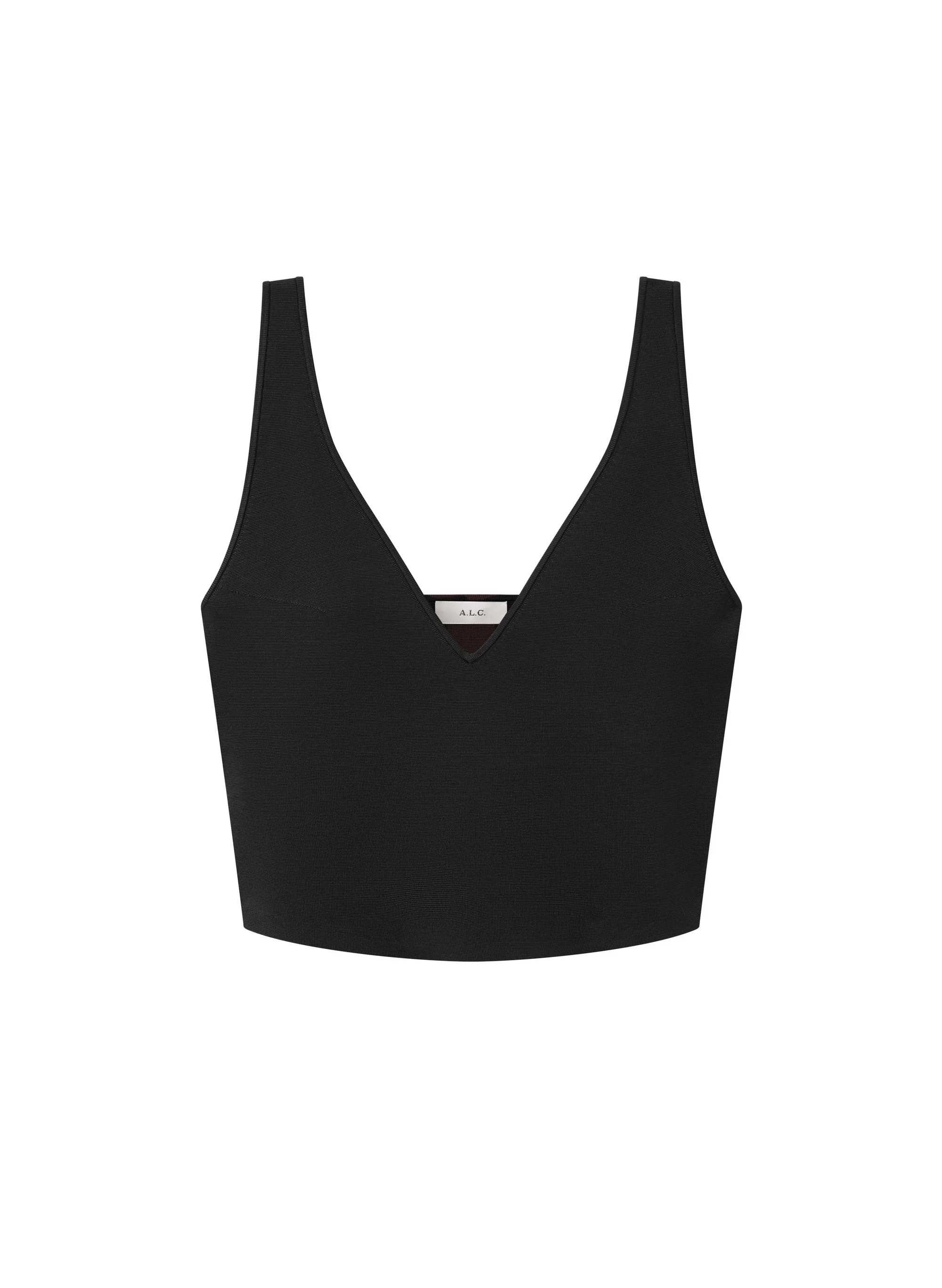 The Ani Top is crafted from sleek and shiny compact rayon. Designed with a deep V neckline, it features a cropped silhouette and wide straps for a clean, modern finish. SIZE & FIT - Model is 5'10" Wearing Size S - Bust 32" Waist 23" Hips 35" - Product Measurements for a Size S: Bust 26.5" Waist 24.75" DETAILS - Style 7SWTP00784 - 76% Rayon 22% Nylon 2% Elastane - Dry Clean - Not Lined - Pull On - Length: 18"