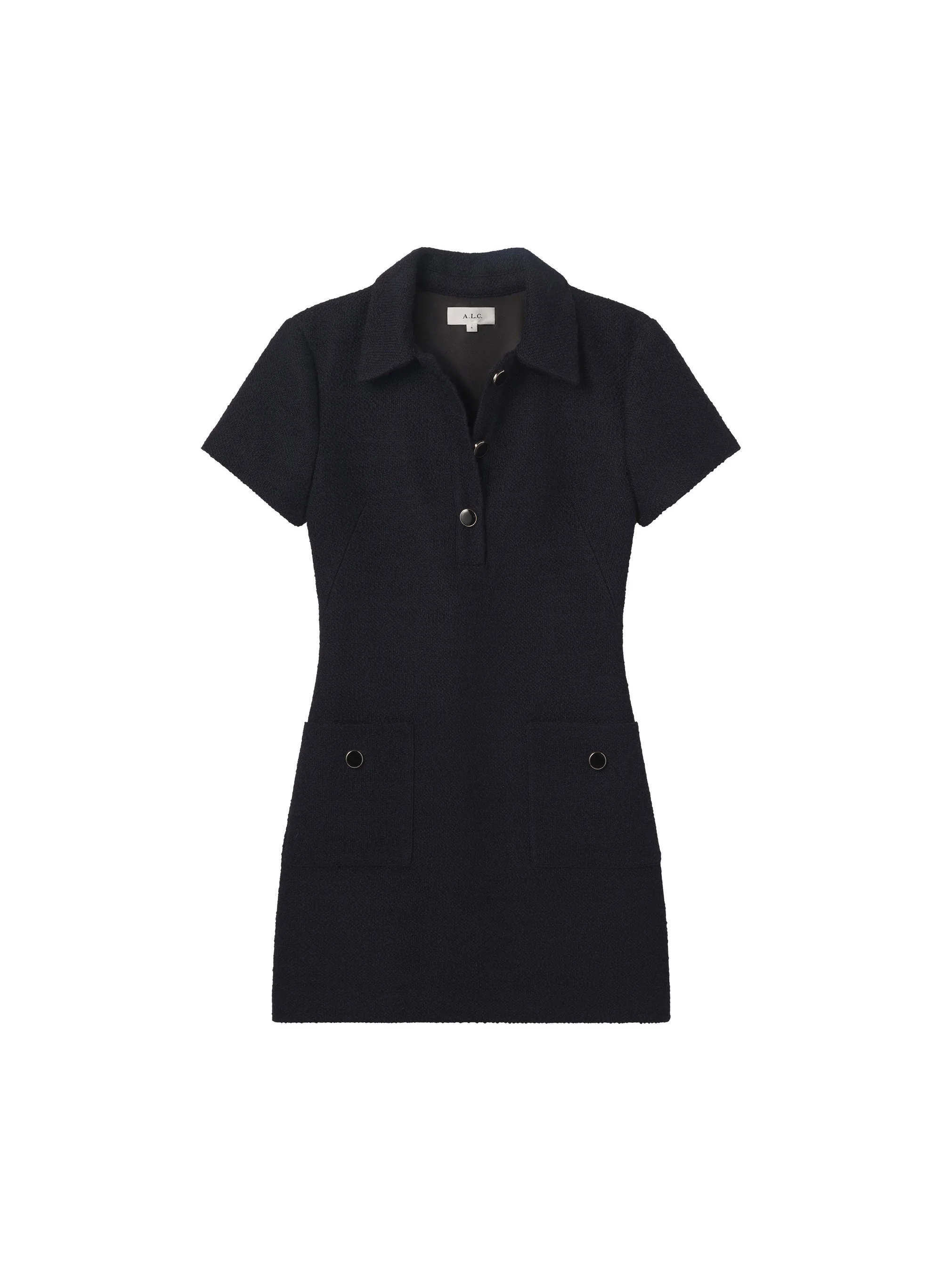 The Marcie Dress is crafted from a textured cotton-boucle blend in deep navy, offering soft structure with a refined, tactile finish. This mini silhouette features a clean polo neckline with polished buttons and oversized patch pockets for a modern, minimal look. - Textured cotton-boucle blend in deep navy - Mini dress silhouette with polo neckline - Short sleeves - Polished buttons - Oversized front patch pockets SIZE & FIT - Model is 5'9.5" Wearing Size 2 - Bust 32" Waist 25.5" Hips 33.5" - Product Measurements for a Size 4: Bust 35" Waist 30.5" Hips 39" DETAILS - Style 6DRES02861 - 30% Polyester 26% Cotton 21% Wool 19% Acrylic 4% Rayon, Lining: 51% Polyester 49% Cotton - Dry Clean - Fully Lined - Zip Closure - Length: 33"