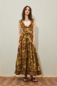 Product Details - Fitted midi dress silhouette - Scoop neck with braided organza trim - Panelled front skirt with braided organza trim - Cut outs at side bodice - Self-ties at back - Invisible zipper at centre back skirt - Fully lined - Refer to size guide for garment measurements - Refer to flat lay product shots for the true product colour representation - Composition: 80% Linen 20% Silk / 56% Linen 44% Viscose - For this piece we recommend dry clean only. Size & Fit Model height is 5’11in/180cm, Bust: 80cm/31.5in, Waist: 58cm/23in, Hip: 89cm/35in, and wears a size AU6