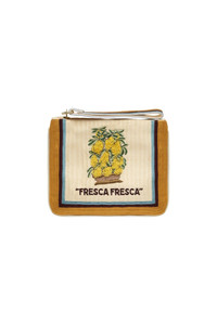 Product Details - Rectangular zip top clutch with embroidered front panel and embroidered wristlet. - Artisanal embroidery detail - Zip top closure - Removeable wooden beaded lemon charm - Refer to flat lay product shots for true product colour representation - Composition: 100% Polyester Satin To care for your piece, we recommend to: - Avoid prolonged exposure to light and heat to prevent damage to delicate fibres. - Handle with care. Avoid bending, overfilling, or placing under pressure. - Protect from moisture and avoid prolonged exposure to rain or humidity. If wet, gently pat dry with a soft cloth. - When not in use, store bags in your Alemais dust bag. Avoid hanging. - Clean gently with a soft, dry cloth. For deeper cleaning, seek professional services only. Size & Fit Dimensions: 21cm W x 17cm H / 13cm handle drop