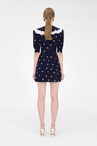 Bows print silk mini dress with ruffles Composition 100% silk Lining A: 100% polyester Lining B: 100% polyamide Colour: navy blue-white Made in Italy Product code: FABX4112 F4595 1844