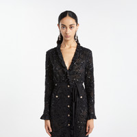 Sequin embroidered lace evening dress Composition 69% acetate 14% polyamide 6% cotton 6% modal Belt: 100% silk Lining: 100% silk Lining 2: 100% polyamide Colour: black Made in Italy Product code: FABX4328 P2577 0900