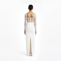 Cady evening dress with lace bustier Composition 64% viscose 33% acetate 3% elastane Lace: 58% cotton 42% polyamide Bow: 100% silk Lining: 95% cupro 5% elastane Lining 2: 100% silk Lining 3: 100% polyamide Colour: white Made in Italy Product code: FABX4267 F4692 0822