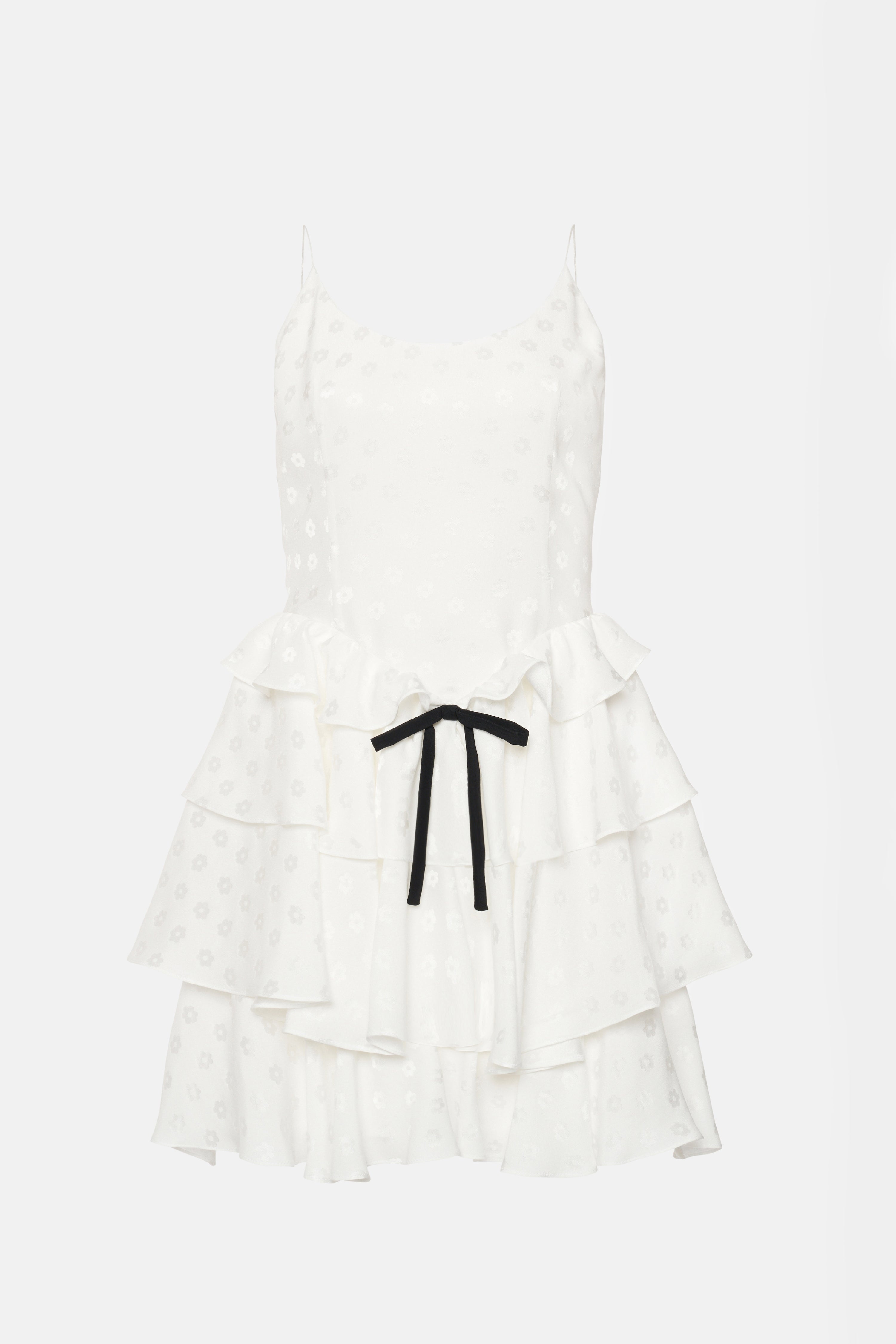 Open back flowers silk jacquard mini dress Composition 100% silk Bow: 100% silk Lining: 100% polyester Colour: white Made in Italy Product code: FABX4194 F4607 0822