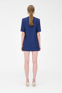 Sequin tweed mini dress with bow Composition 51% polyamide 35% virgin wool 14% polyester Bow: 96% virgin wool 3% polyamide 1% elastane Lining: 100% polyester Colour: bluette-multi Made in Italy Product code: FABX4115 F4585 1676