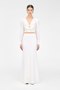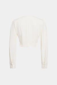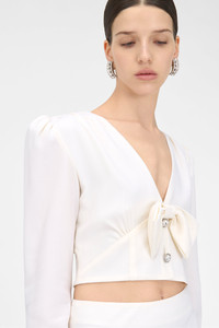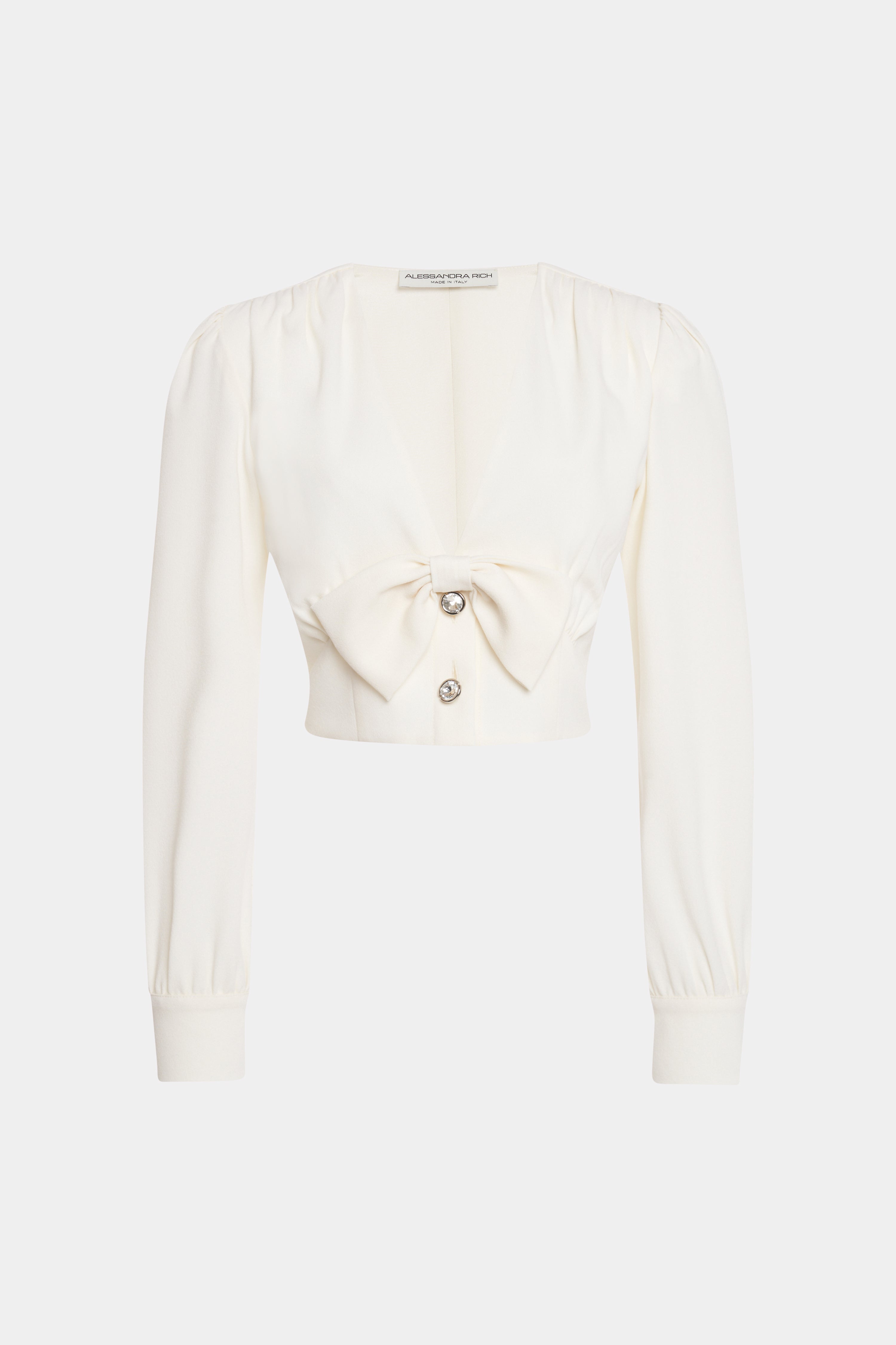 Wool crepe top with bow and jewel buttons Composition 96% virgin wool 3% polyamide 1% elastane Lining A: 100% silk Lining B: 100% polyamide Colour: white Made in Italy Product code: FABX4141 F2335 0822