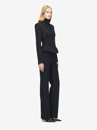 Tailored jacket in black grain de poudre. Notched lapels, chest pocket and tonal corset detailing with hook fastening. Finished with a T-Bar chain back detail. Product details - Notched lapels - Chest pocket - Hook fastening - This product contains 39% of certified wool and 61% of wool sourced from producers following regenerative practices, Kering is partnering among others with the Savory Institute to promote and support the regenerative production of raw materials and utilize Savory's institute methodology, (Ecological Outcome Verification) - Product code: 857751QJAAC1000 - Made in ITALY - Material: 100% Wool