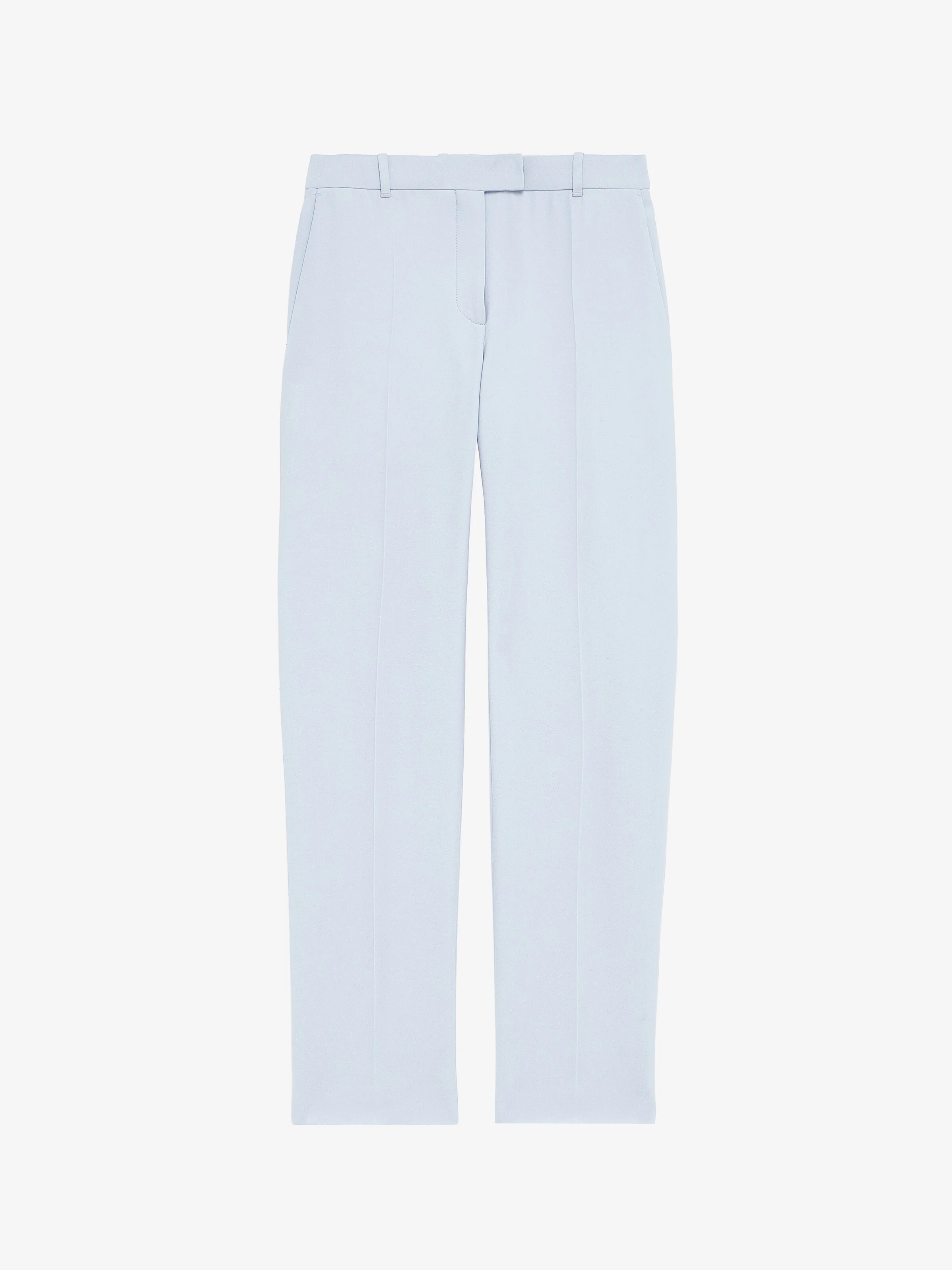 Cropped tailored trousers in ice blue leaf crepe. Detailed with belt loops, two side pockets and two welt pockets on the back. Finished with a concealed zip and hook fastening. Complete the look with the matching jacket. Product details - Side pockets - Back welt pockets - Concealed zip and hook fastening - Product code: 857718QEAAA4602 - Made in ITALY - Material: 52% Viscose, 48% Acetate